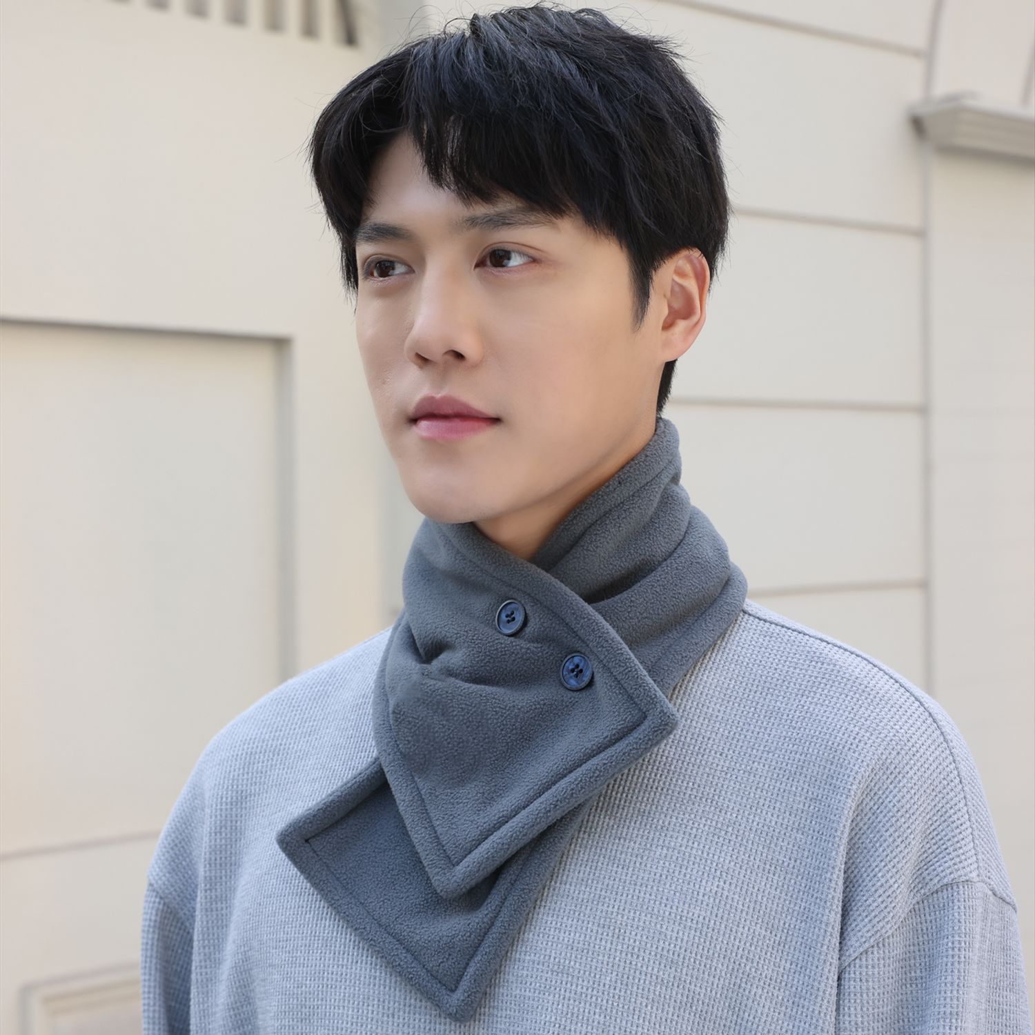 가을 겨울 신제품 폴라 플리스 버튼 스카프, 겨울 방한 및 따뜻한 스카프, 남성용 및 여성용 목 보호대스토어 가기