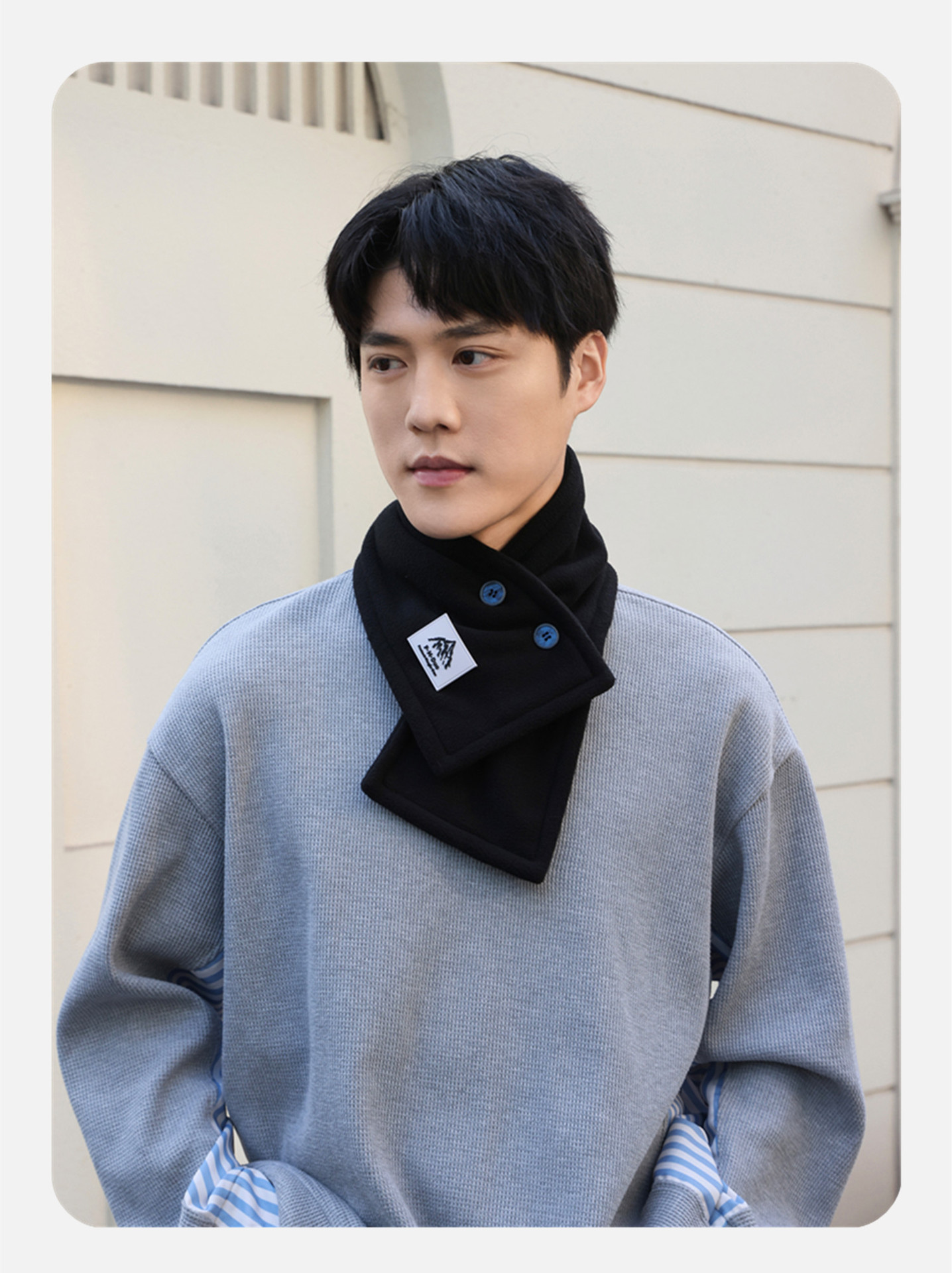 • 버튼 스카프 - 로고가 없는 검정색
