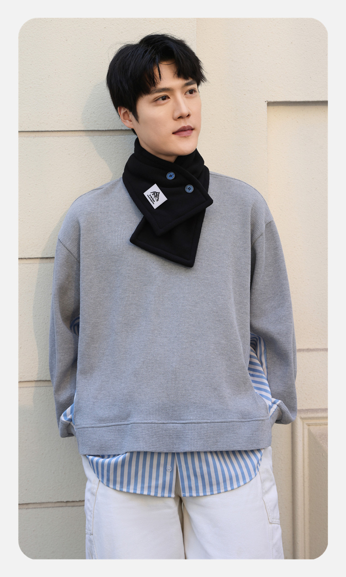 • 로고가 있는 버튼 스카프-양이온 그레이