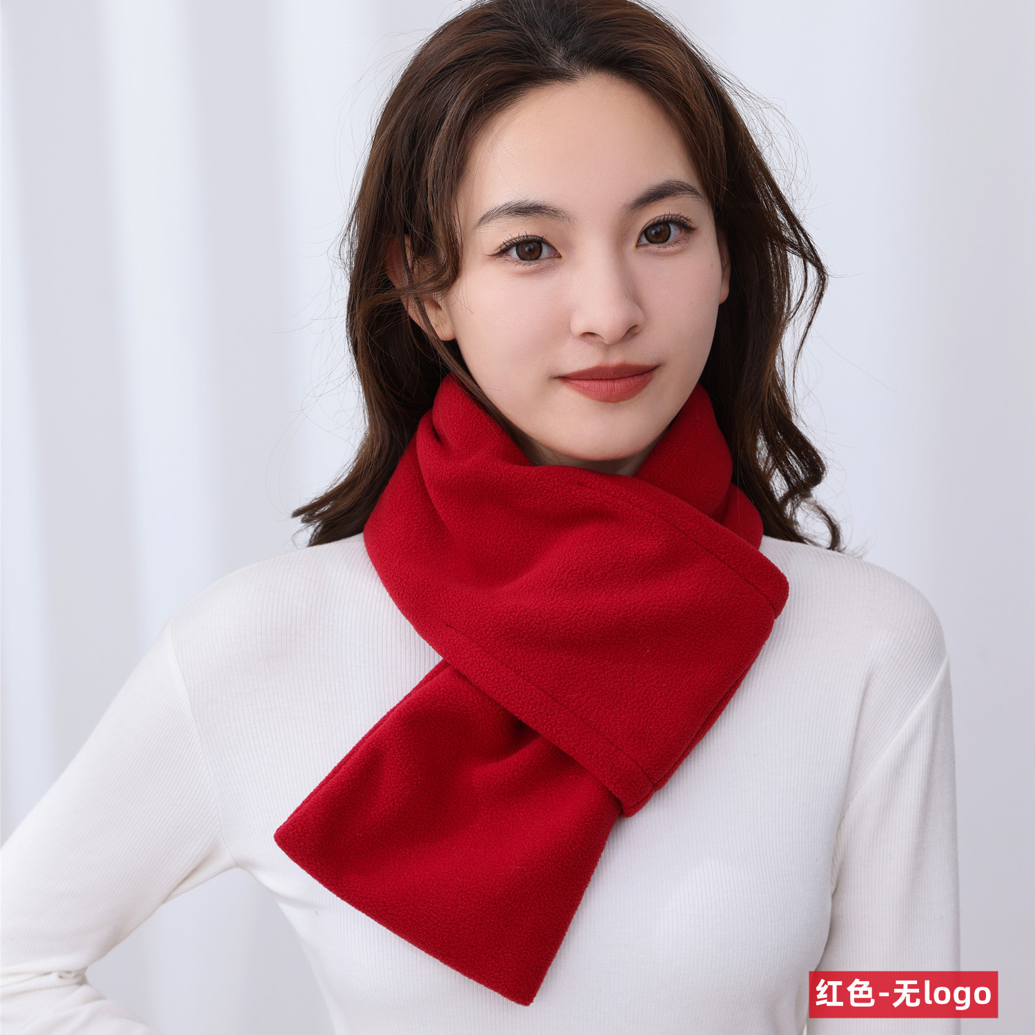 • 버튼 스카프 - 로고가 없는 빨간색