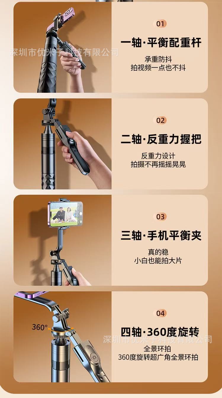 2025 새로운 손떨림 방지 짐벌 안정기 휴대용 셀카 스틱 휴대 전화 범용 여행 촬영 라이브 방송 브래킷 회전