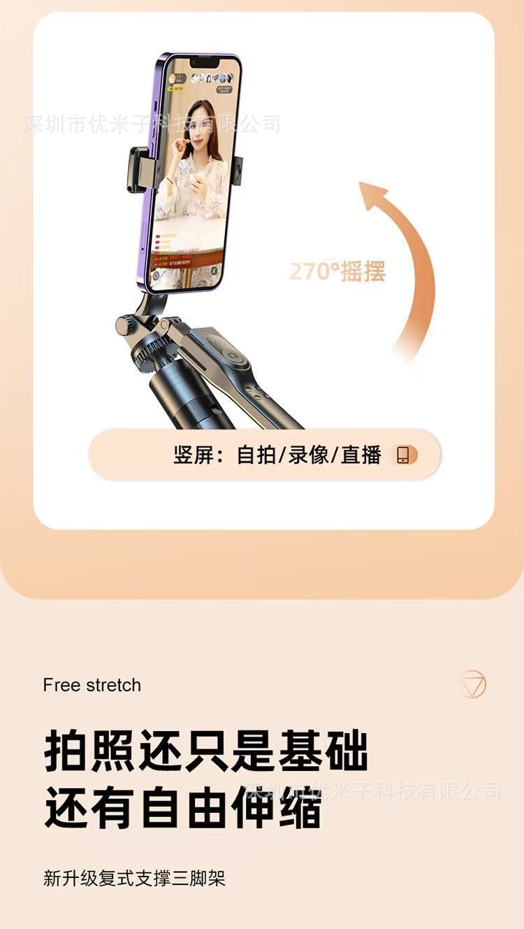 2025 새로운 손떨림 방지 짐벌 안정기 휴대용 셀카 스틱 휴대 전화 범용 여행 촬영 라이브 방송 브래킷 회전스토어 가기