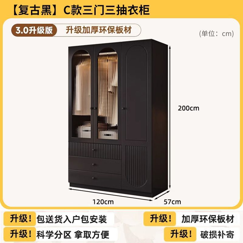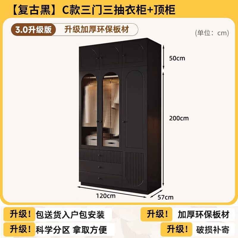 • 레트로 블랙-C 스타일 120cm 옷장 + 상단 캐비닛