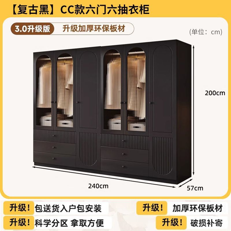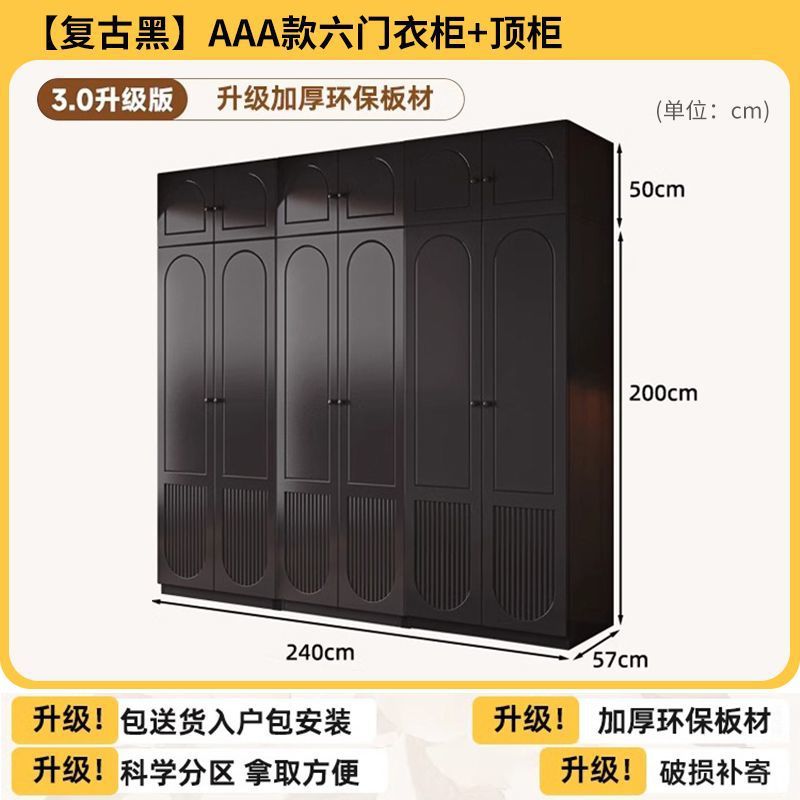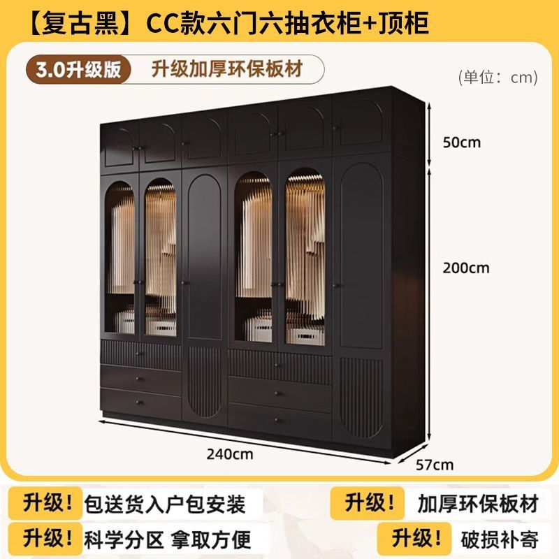 • 레트로 블랙-CC 스타일 240cm 옷장 + 상단 캐비닛