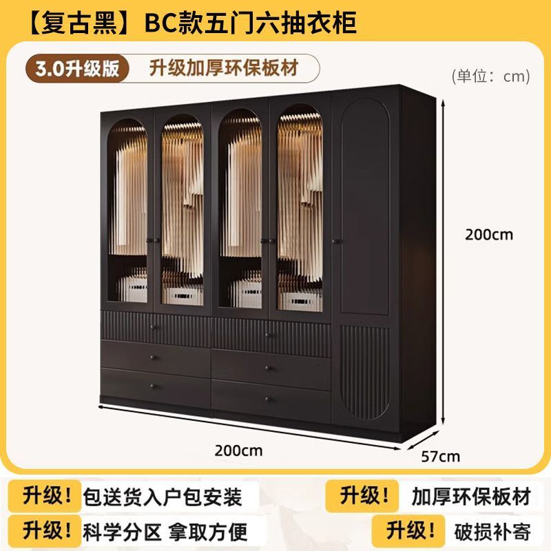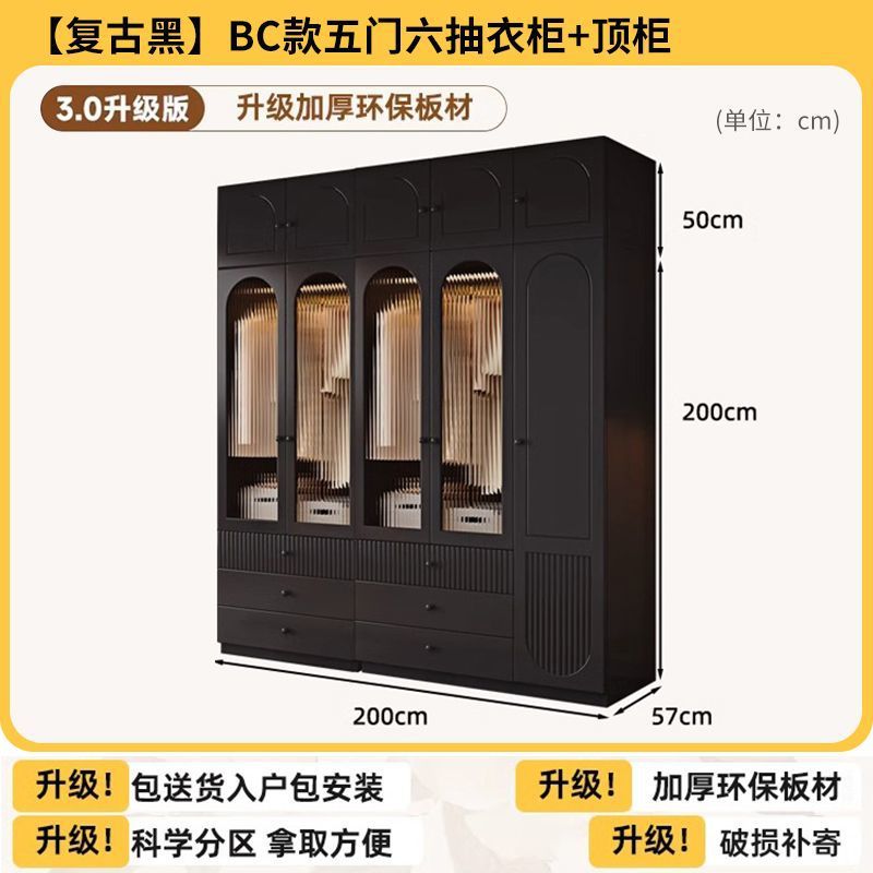 • 레트로 블랙-BC 스타일 200cm 옷장 + 상단 캐비닛