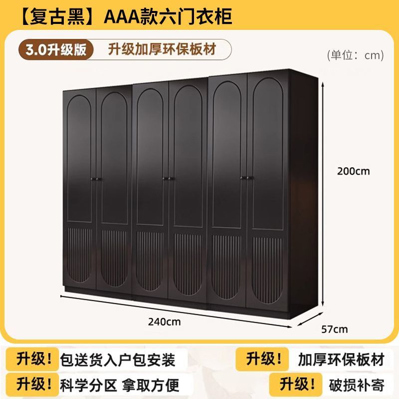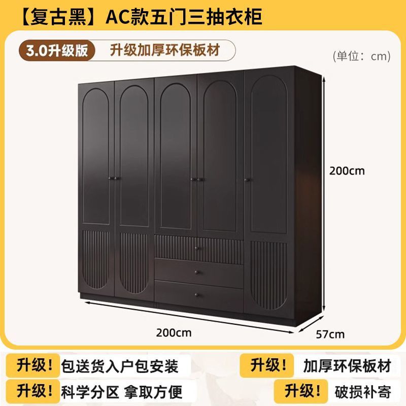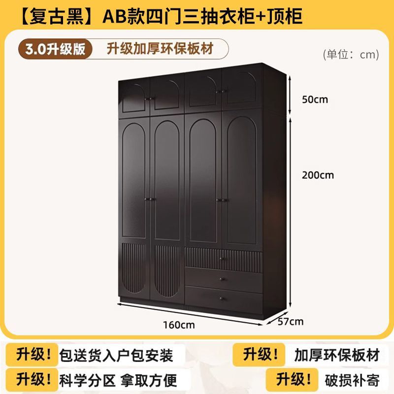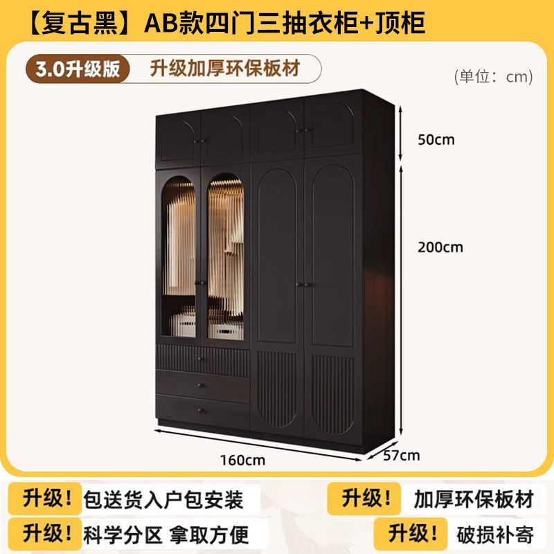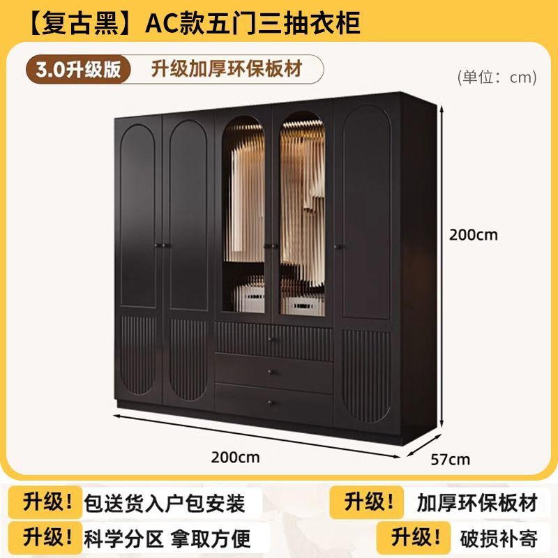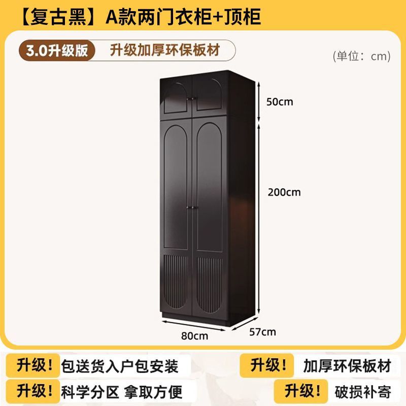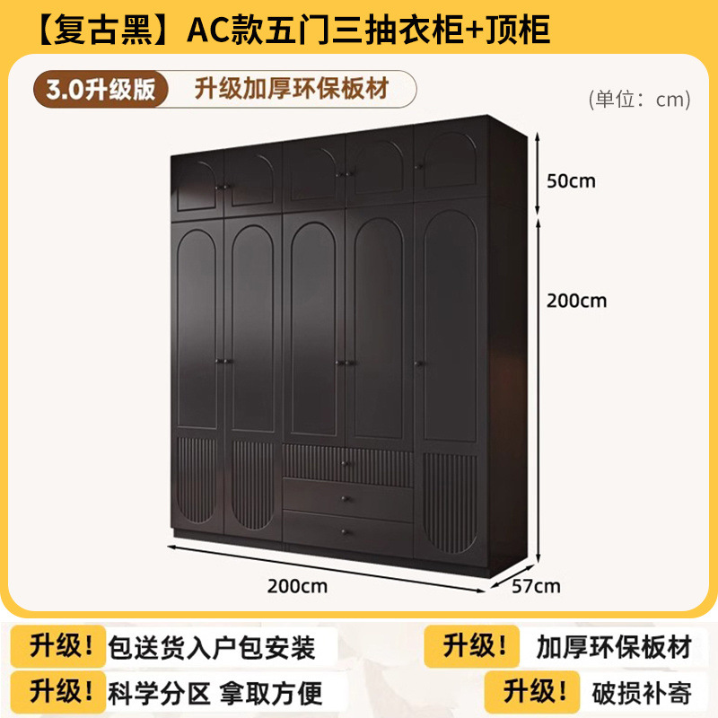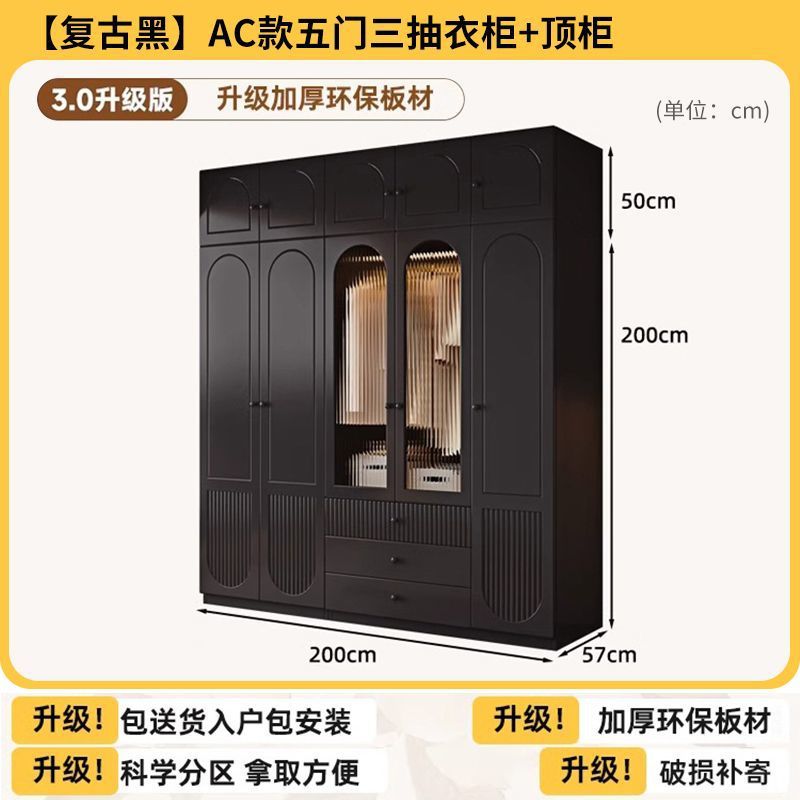 • 레트로 블랙 우드 도어-AC 스타일 200cm 옷장 + 상단 캐비닛