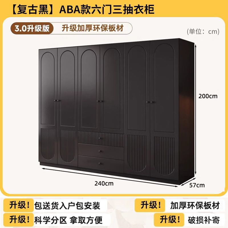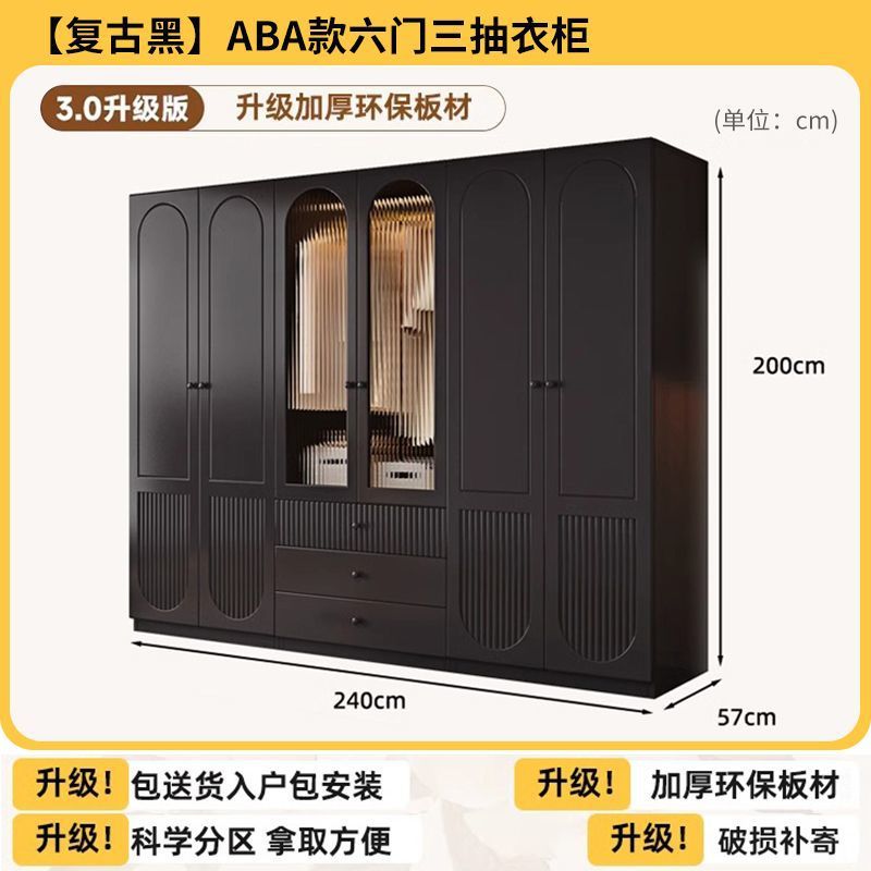 • 레트로 블랙-ABA 스타일 240cm 옷장 + 상단 캐비닛