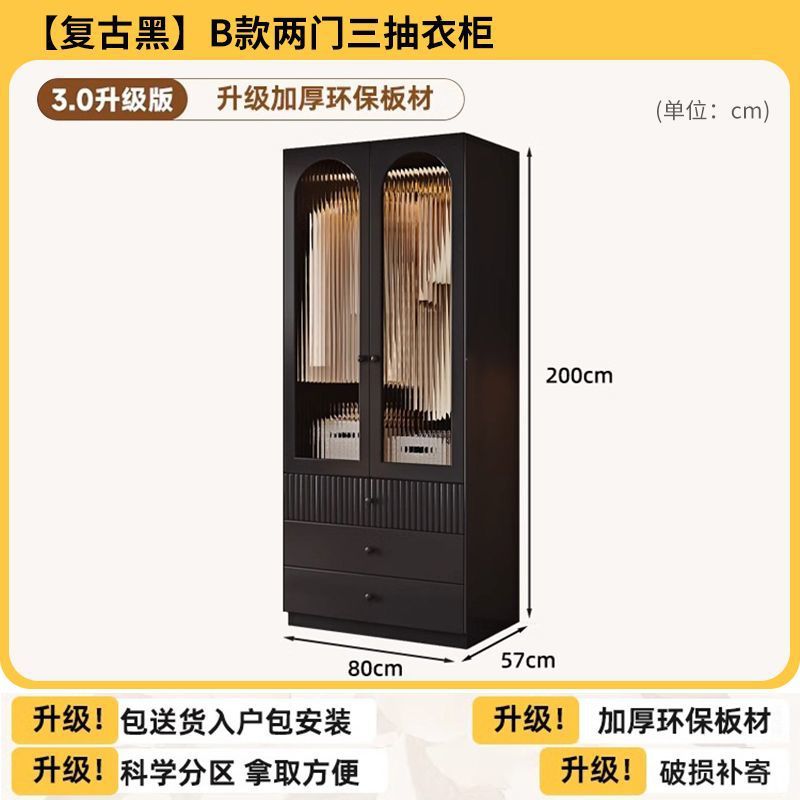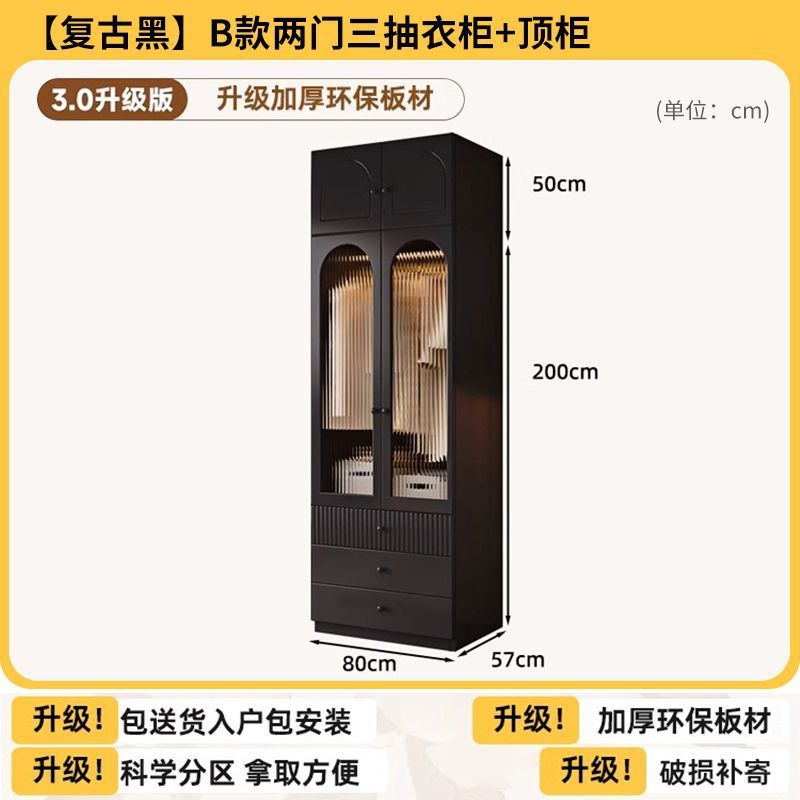 • 레트로 블랙-B 스타일 80cm 옷장 + 상단 캐비닛