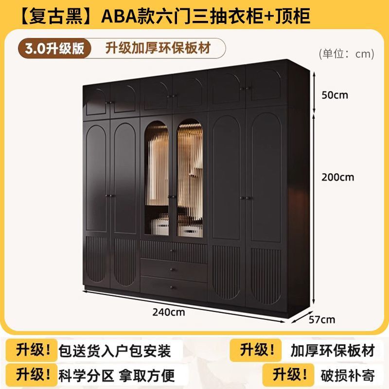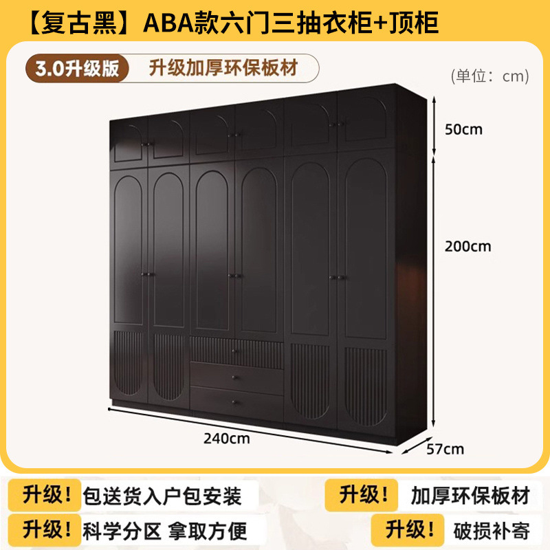 • 레트로 블랙 우드 도어 - ABA 스타일 240cm 옷장 + 상단 캐비닛