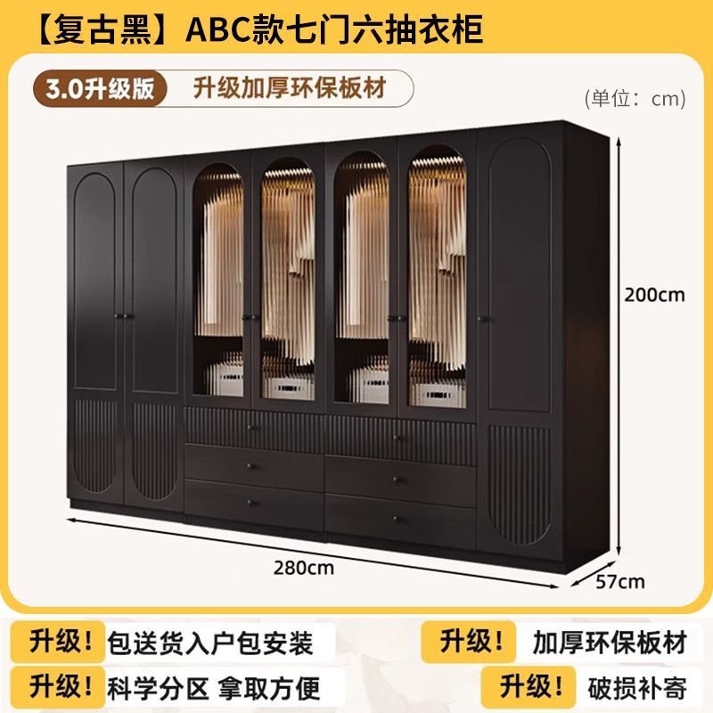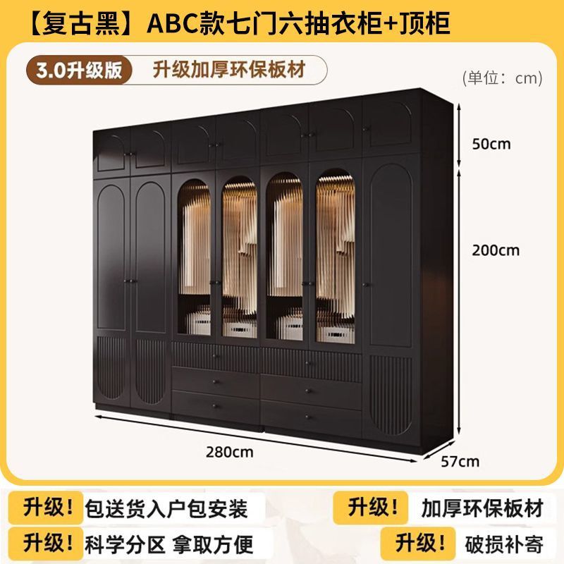 • 레트로 블랙-ABC 스타일 280cm 옷장 + 상단 캐비닛