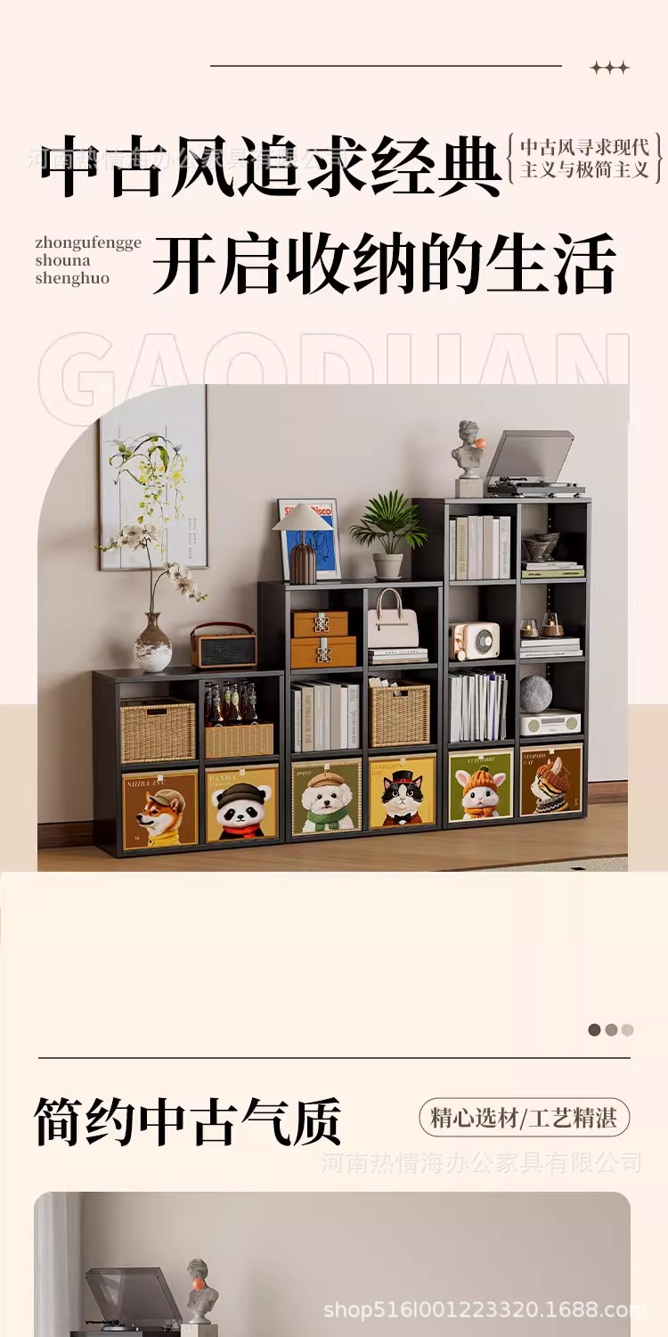 中古风钢制格子柜自由组合儿童书架卡莱克落地置物架子铁艺收纳架
