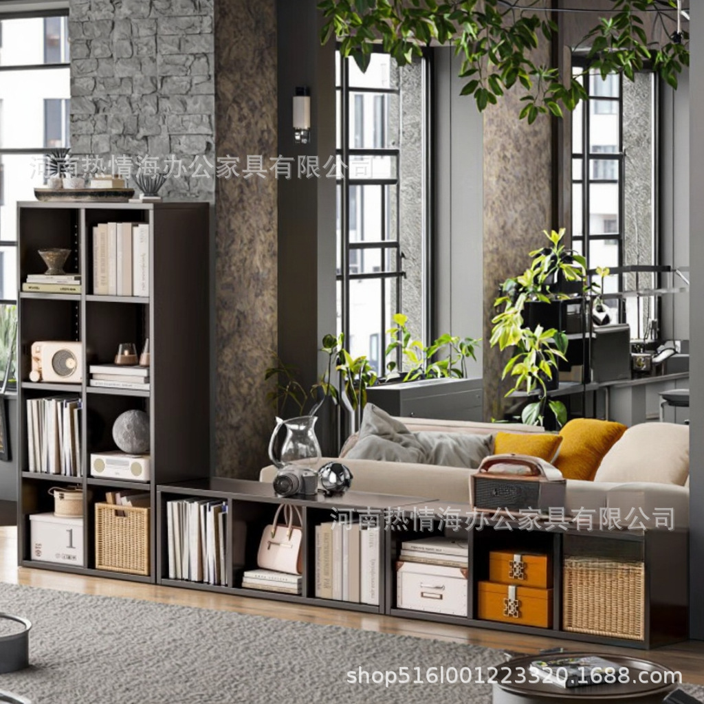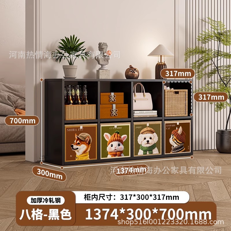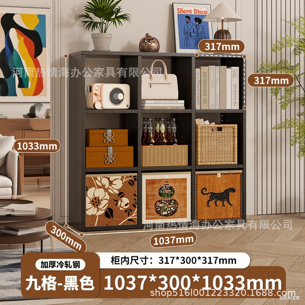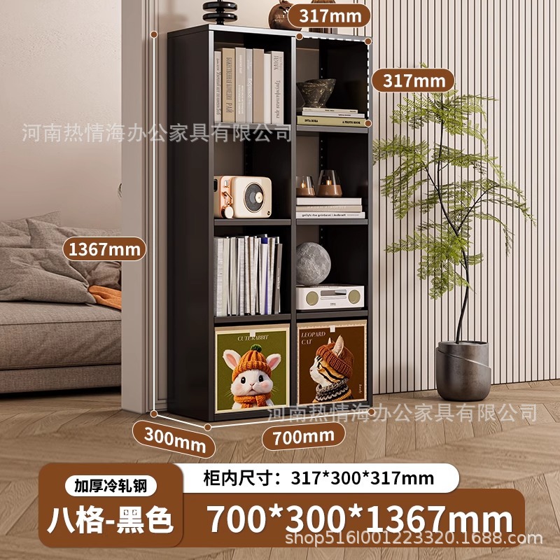 钢制客厅电视柜满墙书柜铁皮格子柜储物柜落地组合铁艺书架收纳柜
