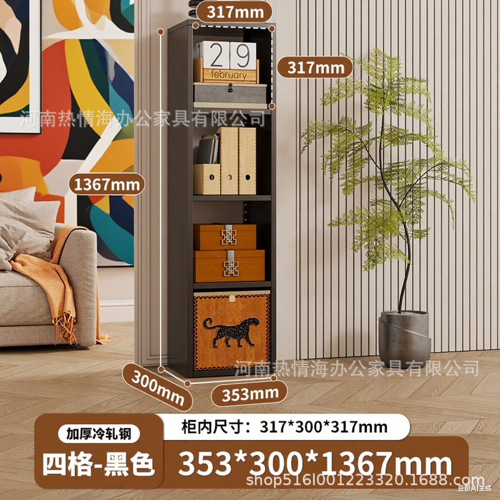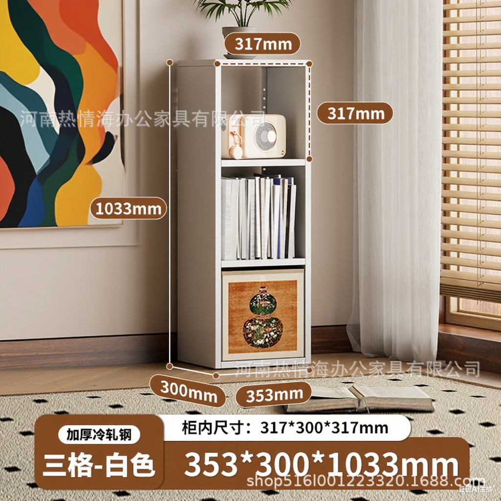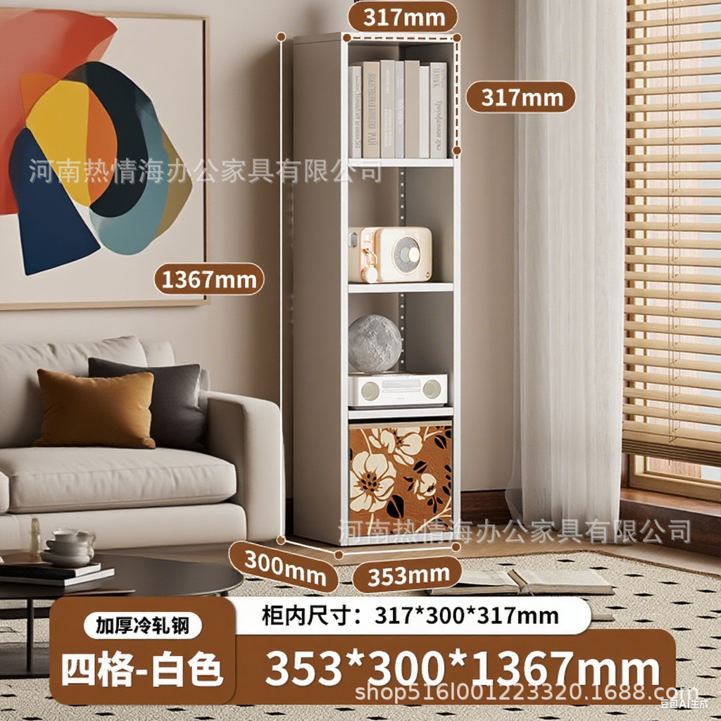钢制客厅电视柜满墙书柜铁皮格子柜储物柜落地组合铁艺书架收纳柜