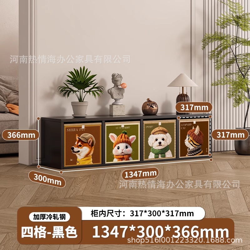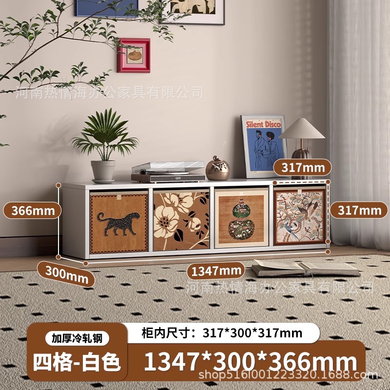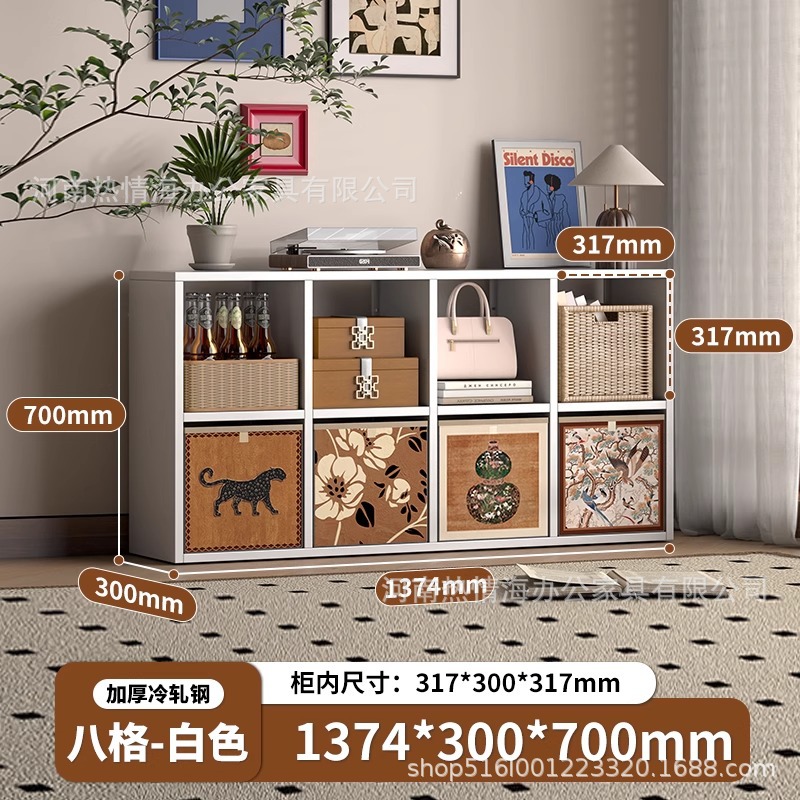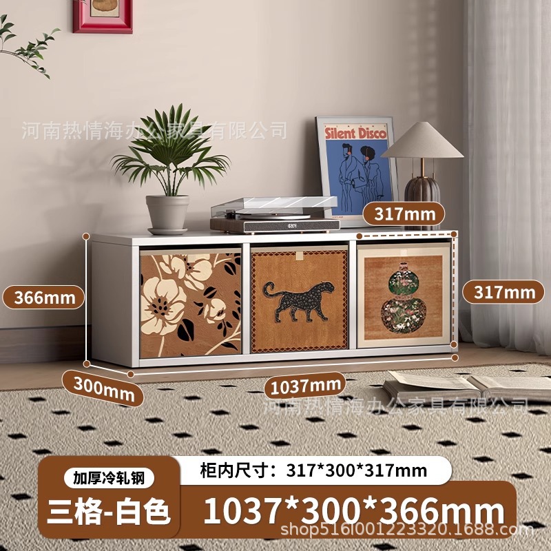 中古风铁艺电视柜客厅简易书柜钢制格子柜小户型家用铁皮收纳柜