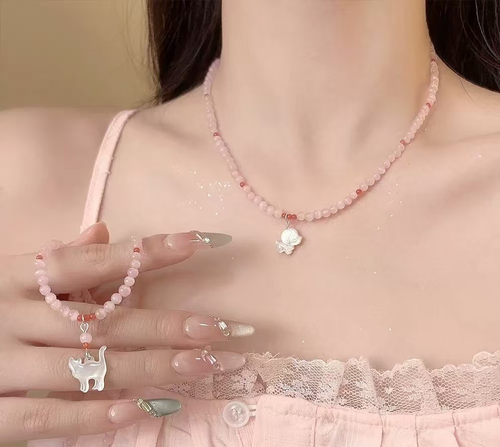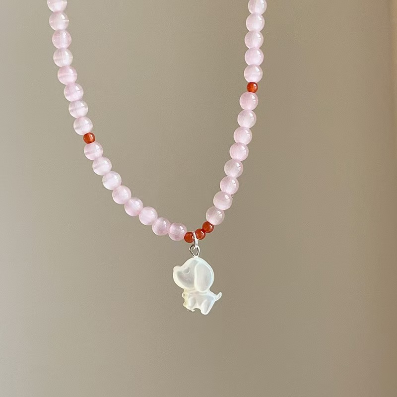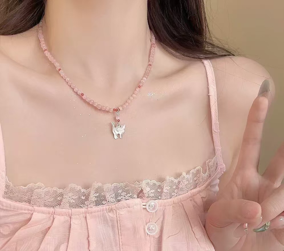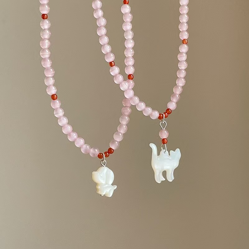 여성을 위한 가벼운 럭셔리 및 고급 고양이와 강아지 핑크 비즈 목걸이, 절묘한 쇄골 체인 목걸이 액세서리 및 액세서리