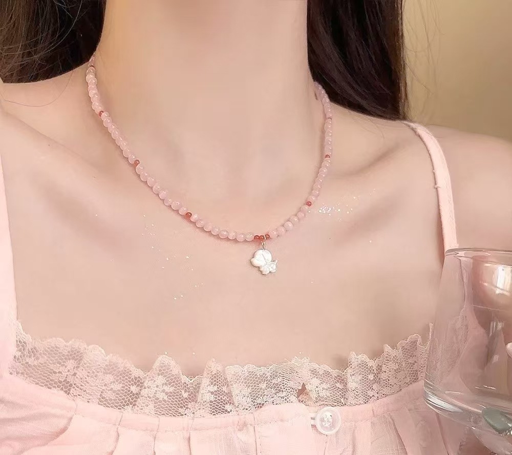 여성을 위한 가벼운 럭셔리 및 고급 고양이와 강아지 핑크 비즈 목걸이, 절묘한 쇄골 체인 목걸이 액세서리 및 액세서리스토어 가기