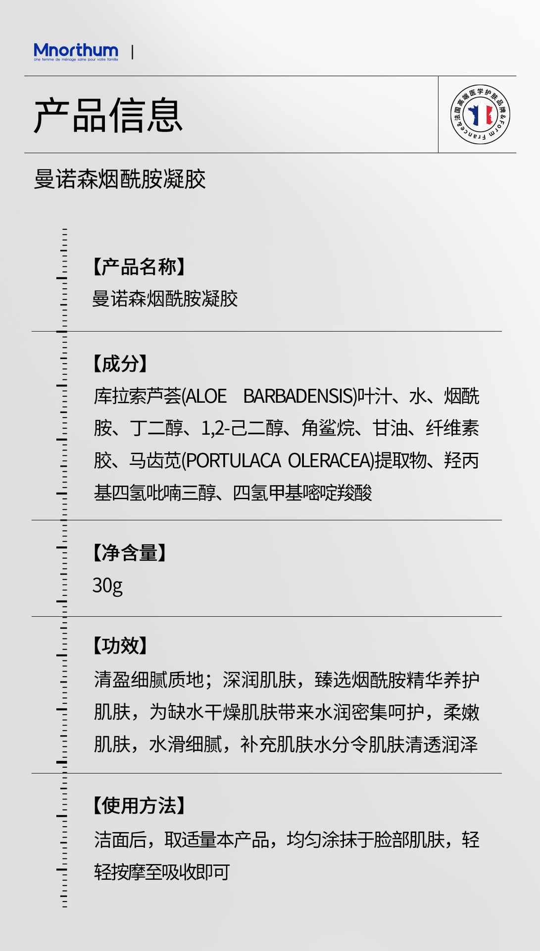 마노슨 나이아신아마이드 젤은 피부톤을 밝게 해주고, 얼굴의 칙칙함을 개선해주며, 피부에 수분을 공급하고 촉촉하게 가꾸어 빛나는 피부를 선사합니다.