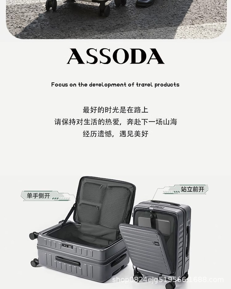 ASSODA2025 새로운 전면 개방 확장 가능한 가방 여성 20inch 탑승 케이스 유니버설 휠 29 트롤리 케이스스토어 가기
