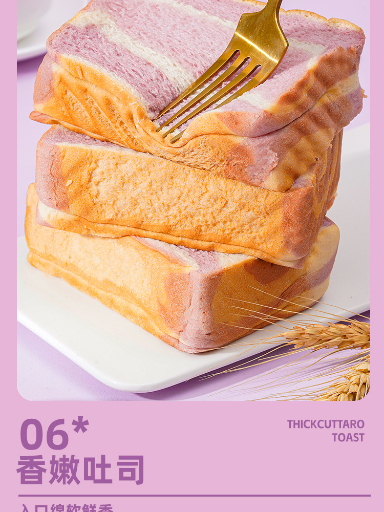 타로 퓨레 두껍게 썬 토스트빵 한박스 아침식사 대용 건강한 슬라이스 부드럽고 쫄깃한 맛있는 캐주얼 스낵 영양가득