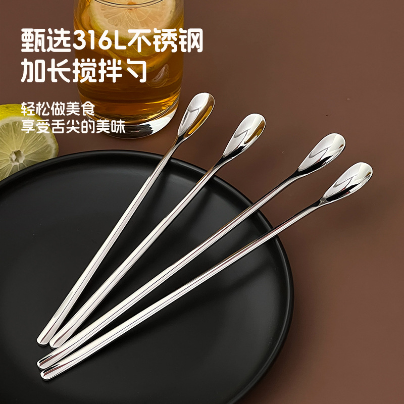 316 스테인레스 스틸 믹싱 스푼 밀크 티 차가운 음료 롱 핸들 아이스 스푼 인 바 바텐더 커피 스푼 허니 스푼스토어 가기