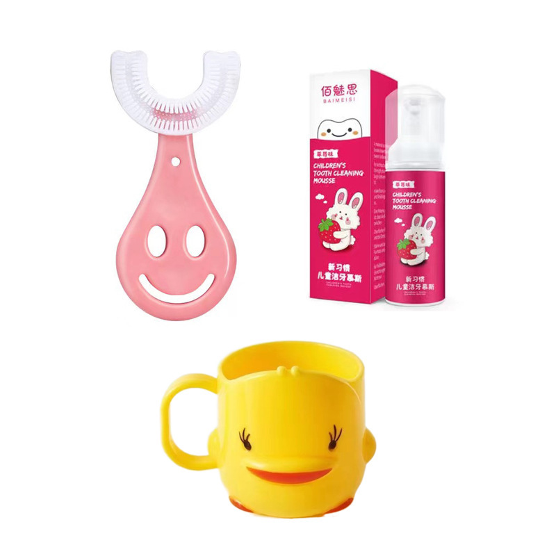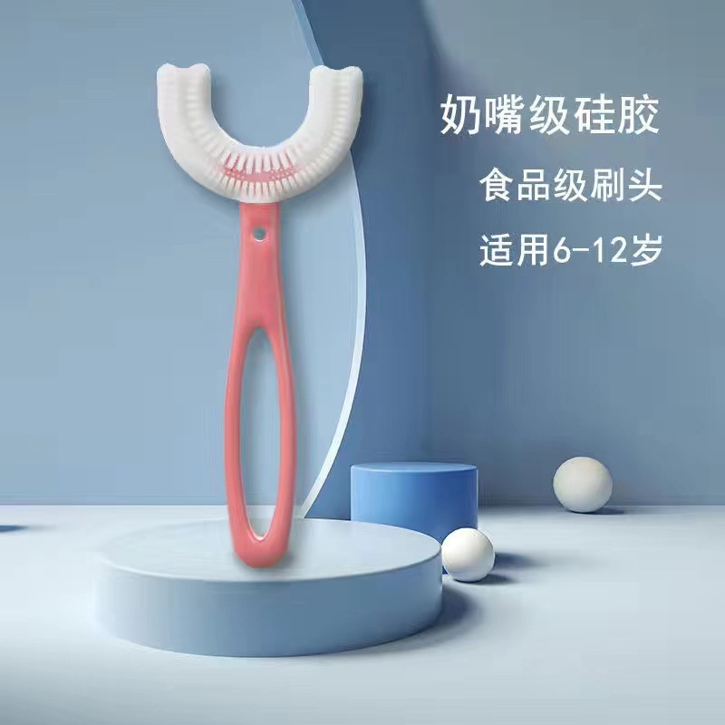 어린이용 칫솔 U자형 유아용 2~3세~6~12세 이상 치약 U자형 부드러운 모 유아 및 어린이 칫솔질 체인 밸런스