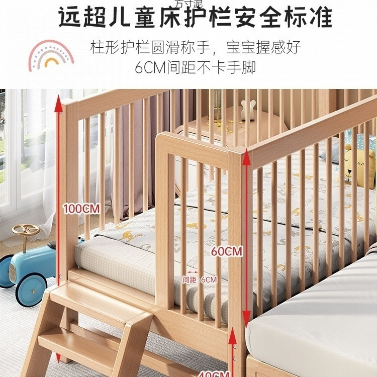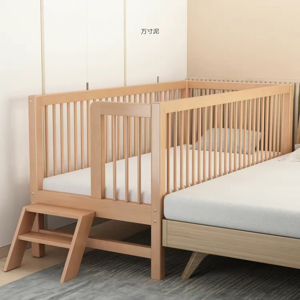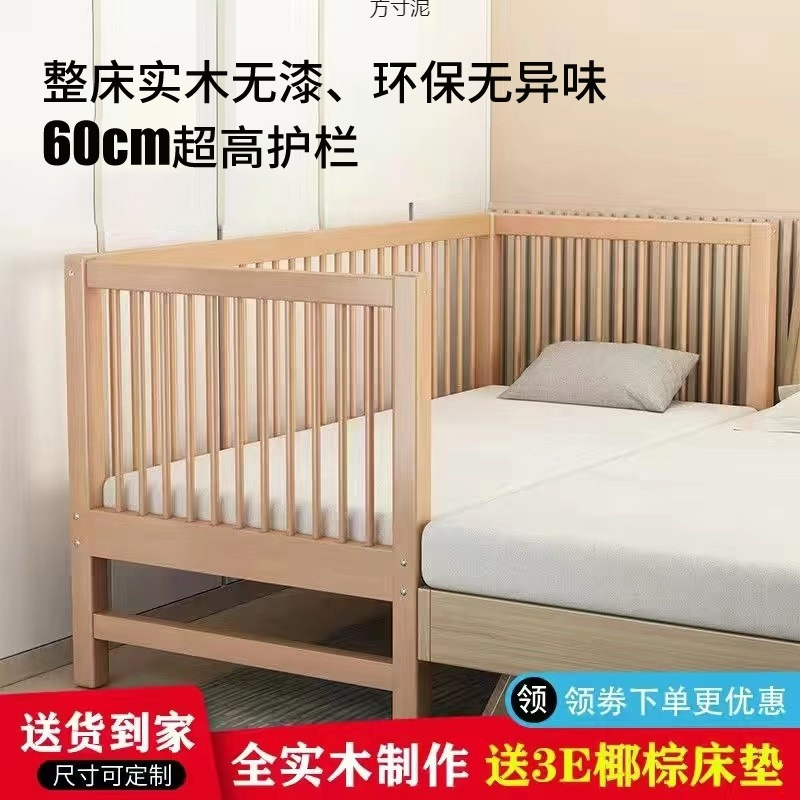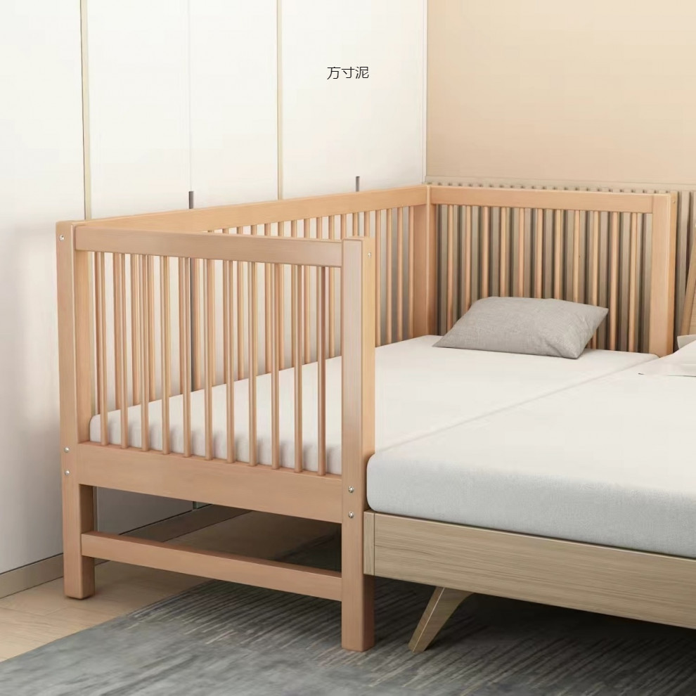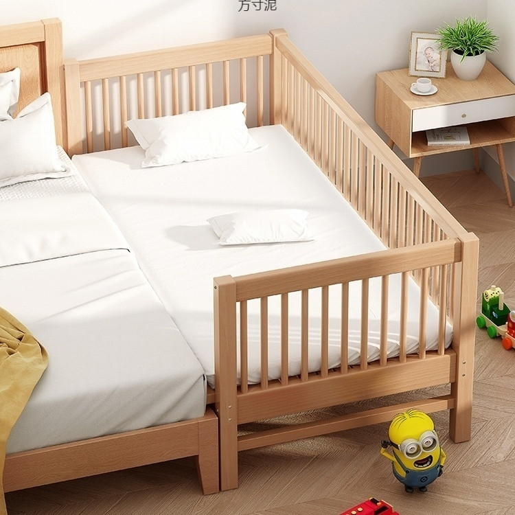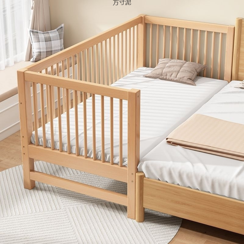 가드 레일이있는 대형 침대가있는 너도밤 나무 어린이 침대 싱글 소년 확장 아기 침대 옆 유아용 침대 단단한 나무 도매스토어 가기