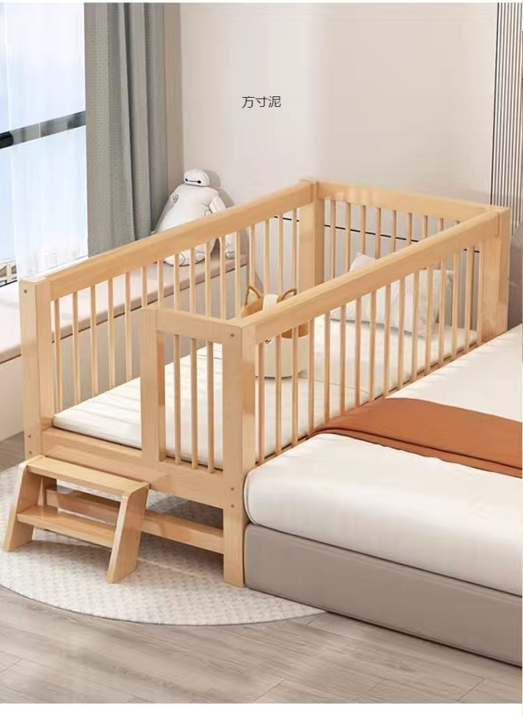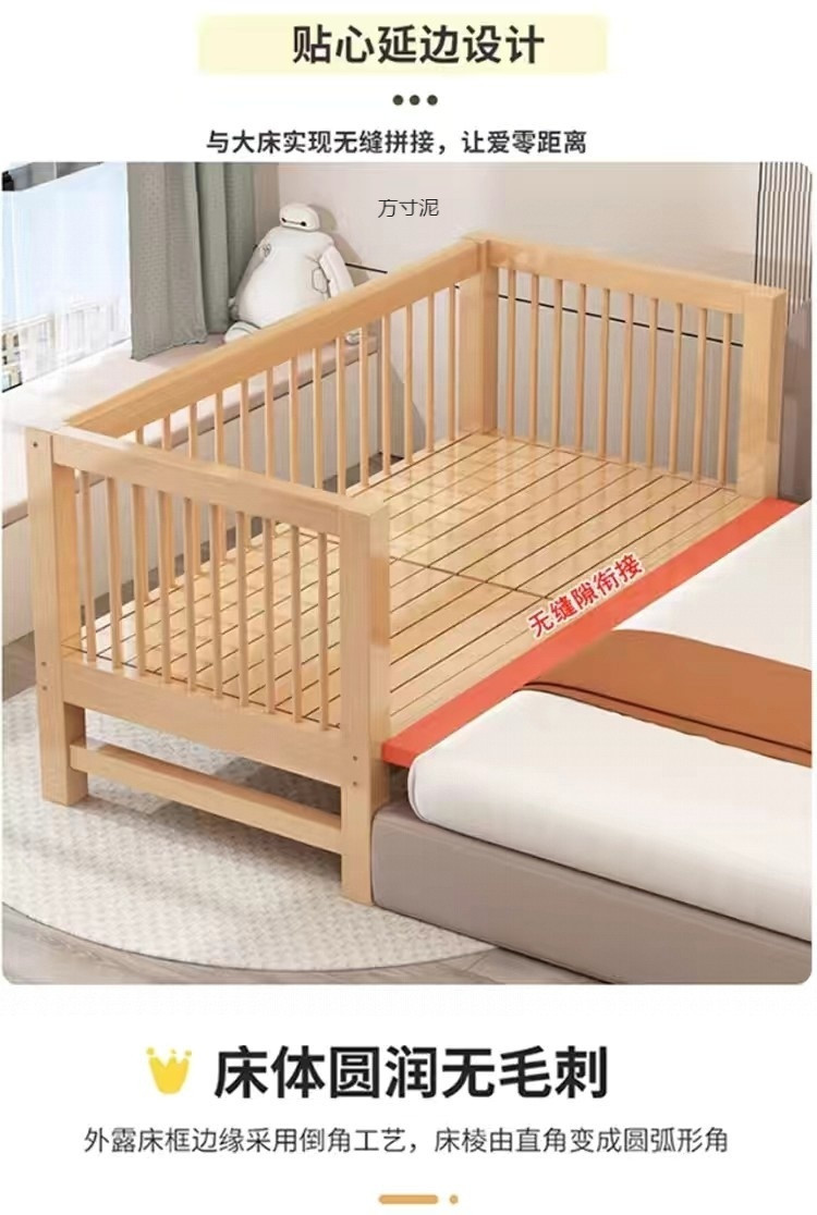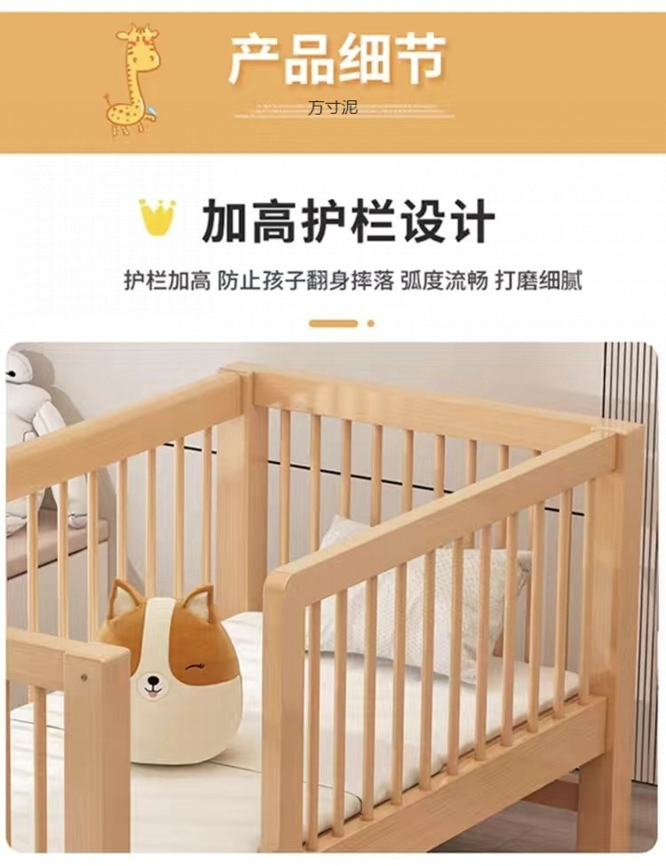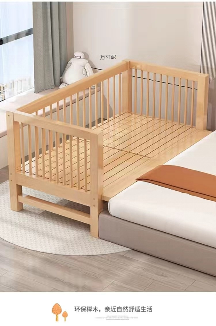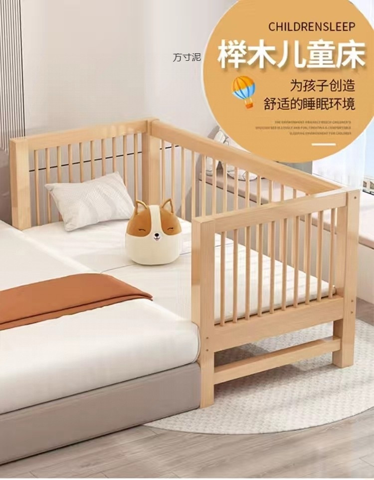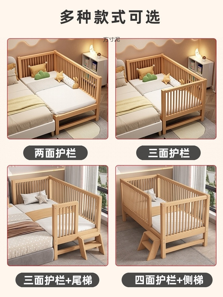 가드 레일이있는 대형 침대가있는 너도밤 나무 어린이 침대 싱글 소년 확장 아기 침대 옆 유아용 침대 단단한 나무 도매스토어 가기