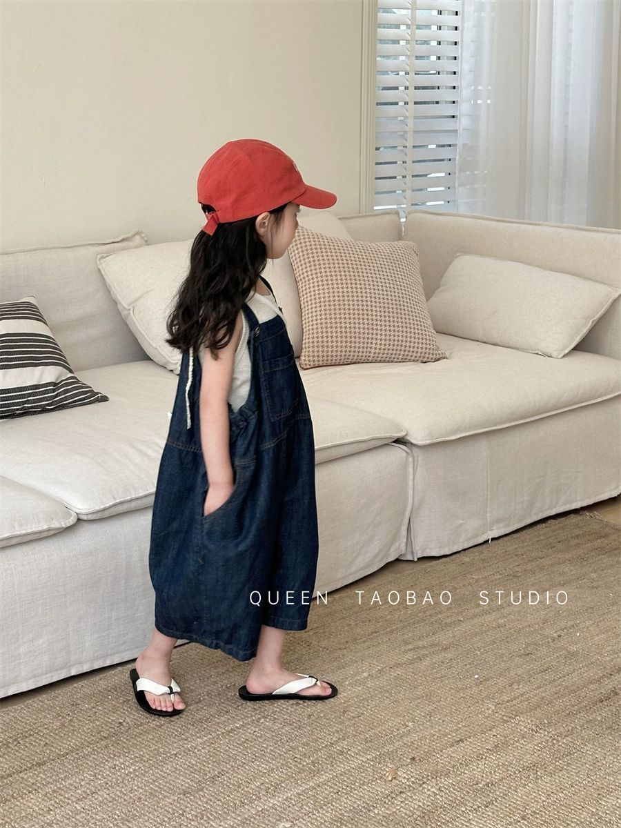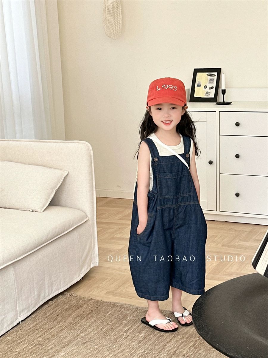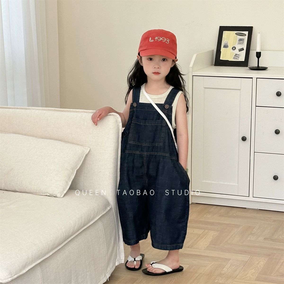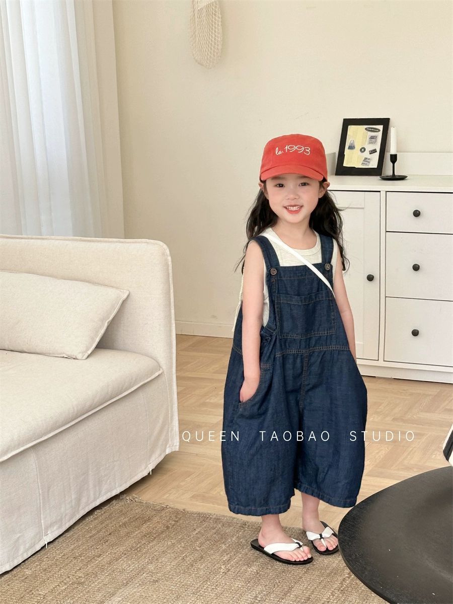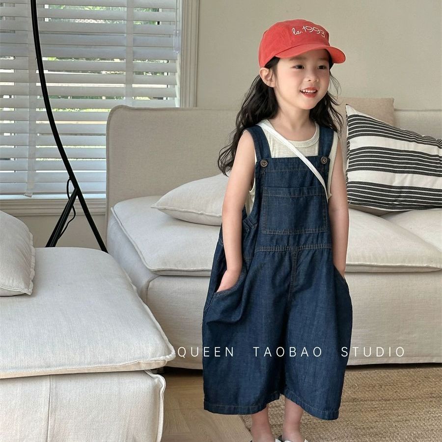 한국 스타일 아동복 소녀 느슨한 데님 작업복 2025 여름 새로운 중립 아기 유행 가벼운 작업복스토어 가기