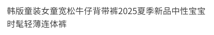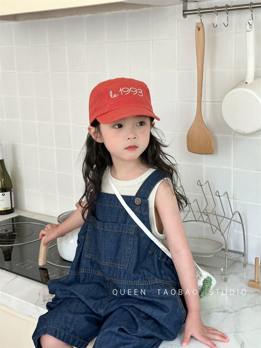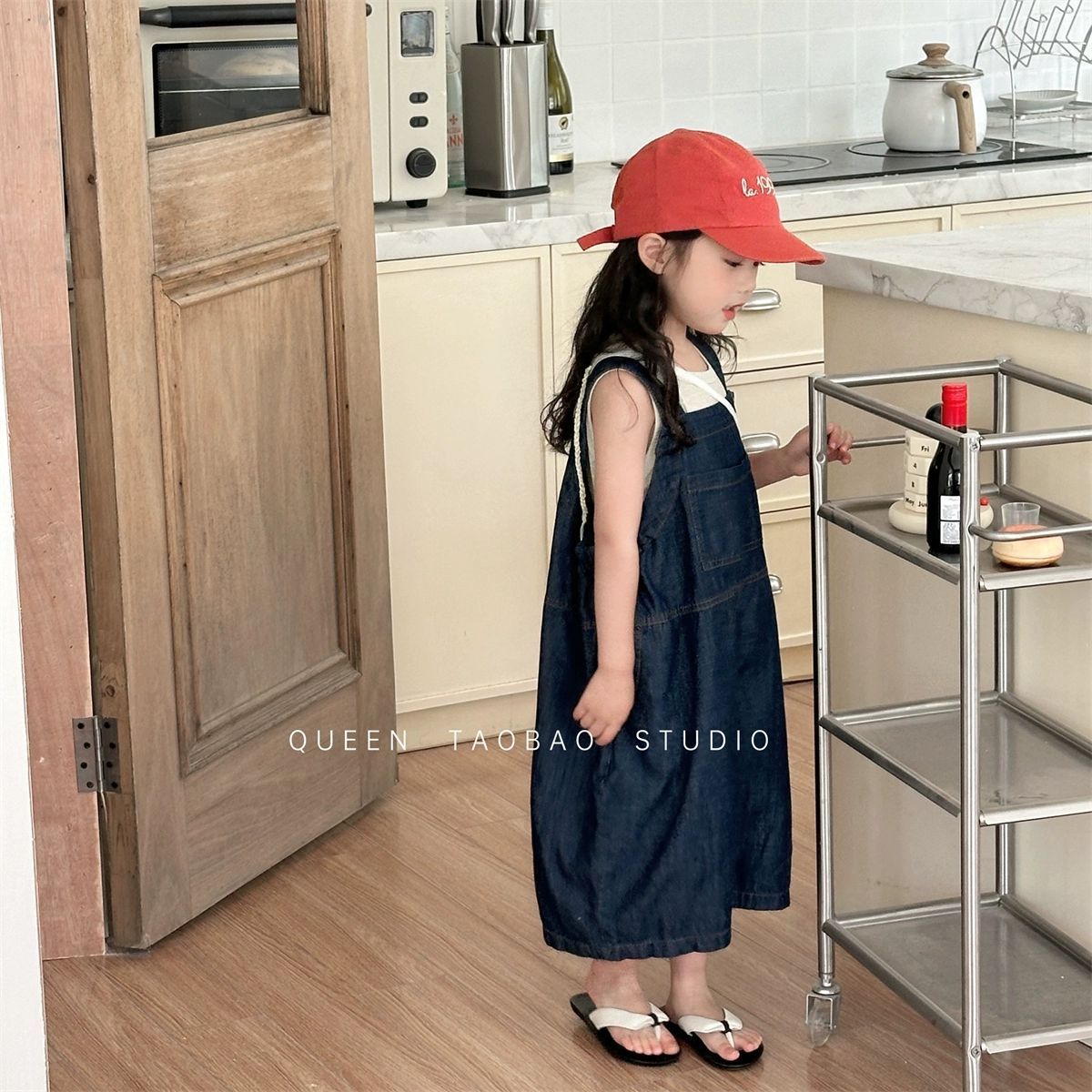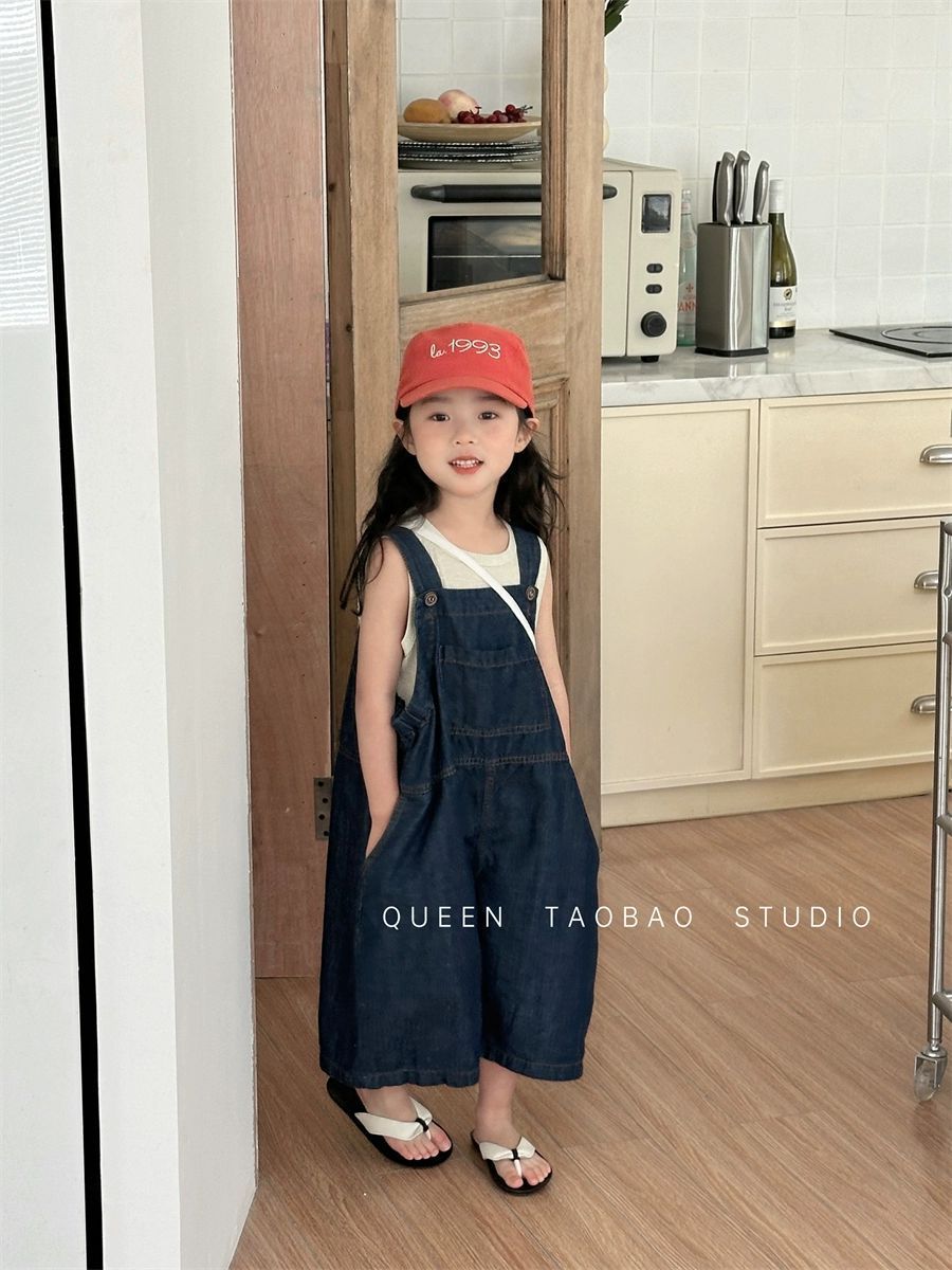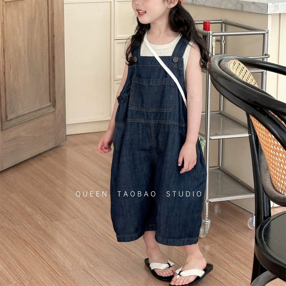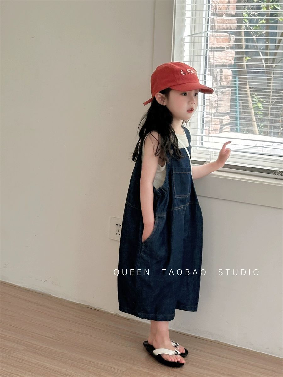 한국 스타일 아동복 소녀 느슨한 데님 작업복 2025 여름 새로운 중립 아기 유행 가벼운 작업복스토어 가기