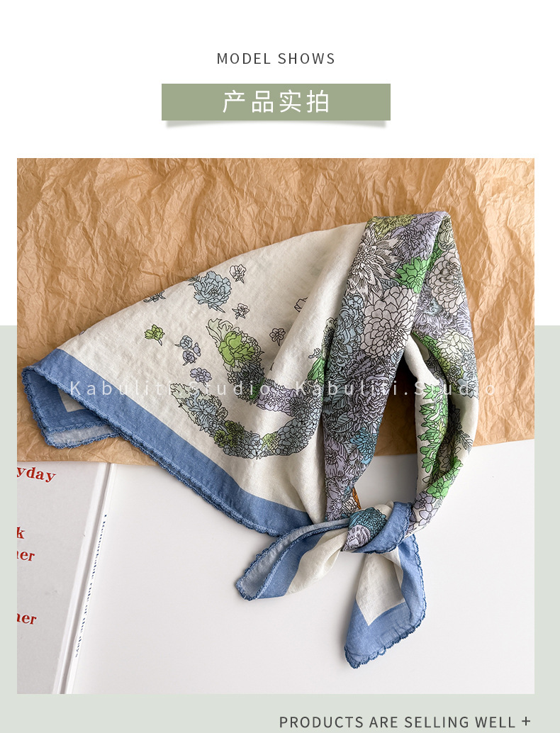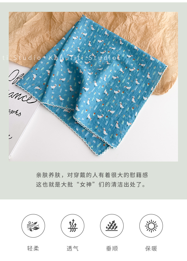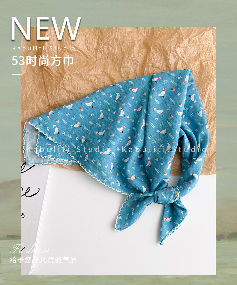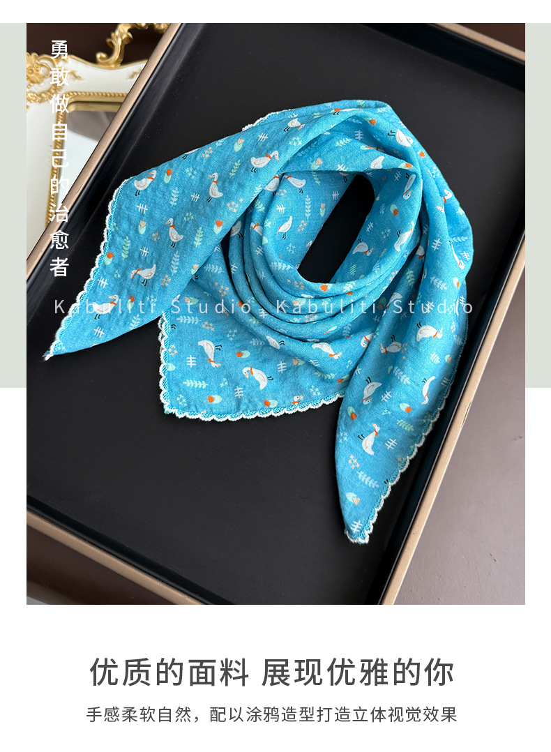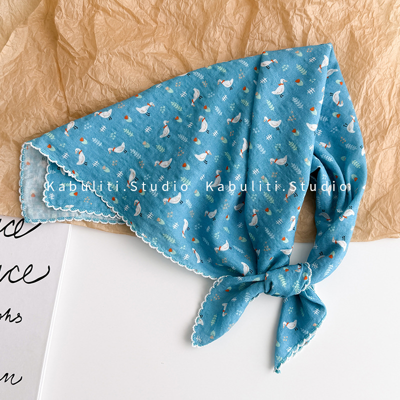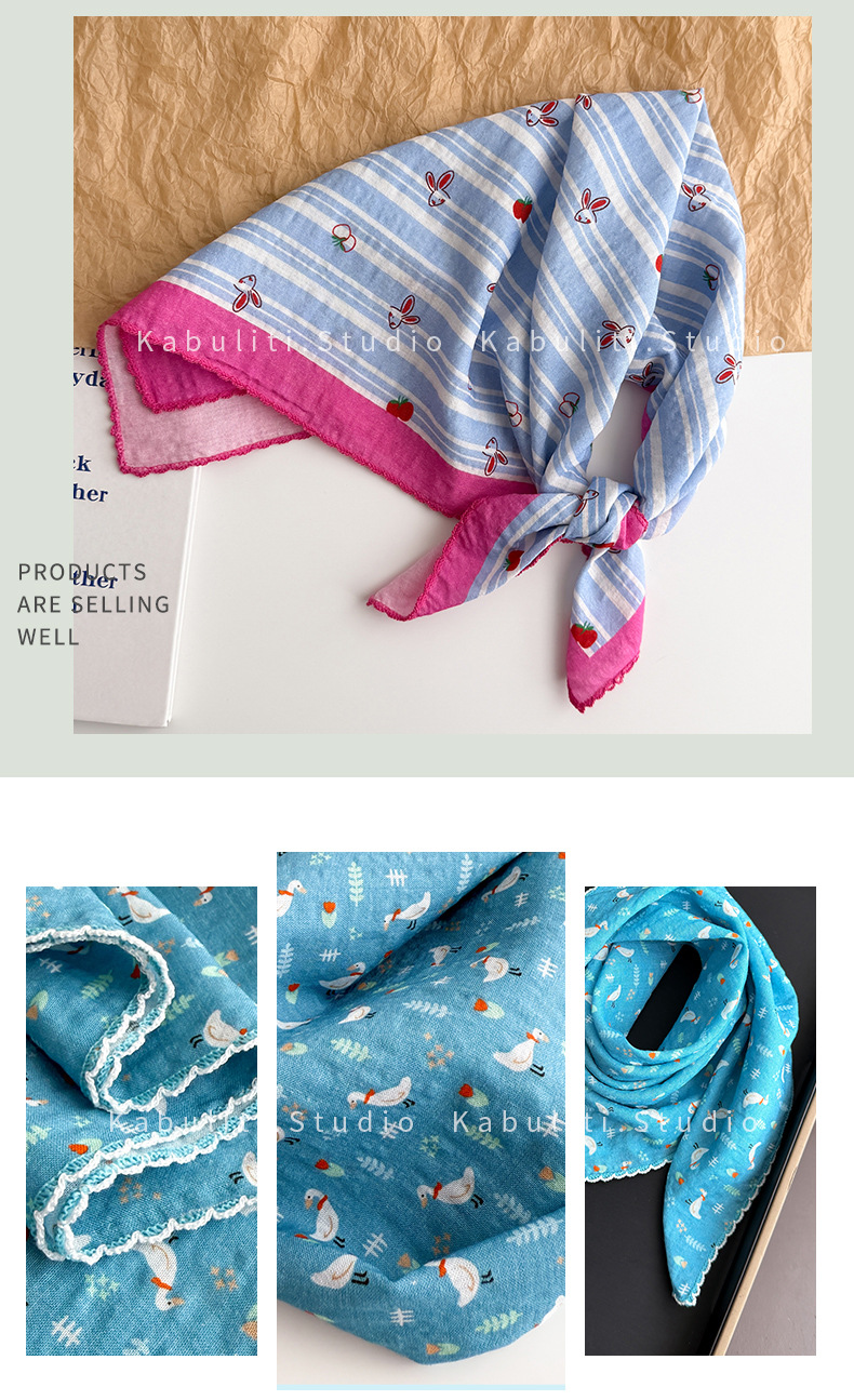 만화 귀여운 작은 사각형 스카프 삼각형 바오터우 태양 보호 실크 스카프 소녀 어린이 목 보호대 머리띠 거즈 스카프 얇은 스카프스토어 가기