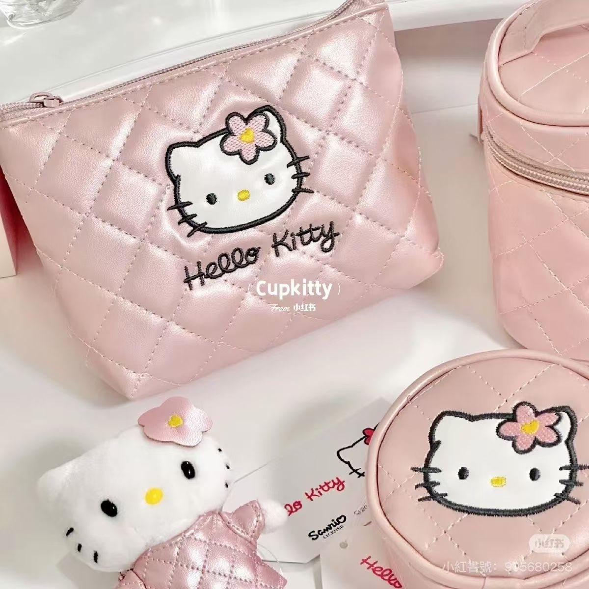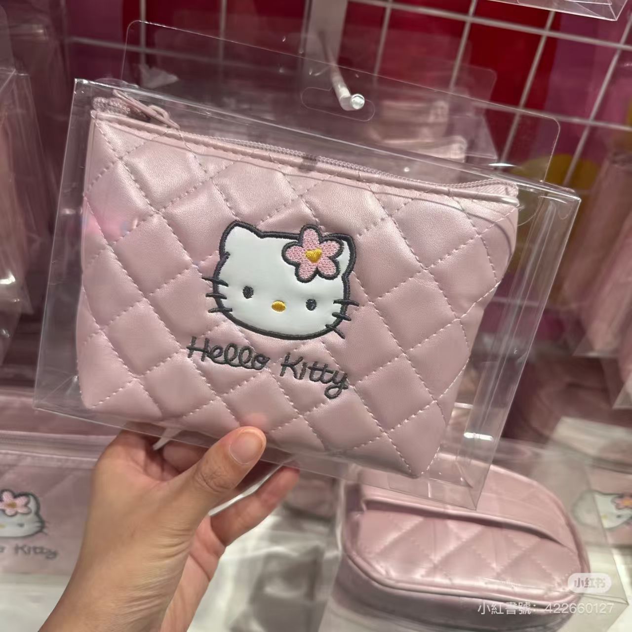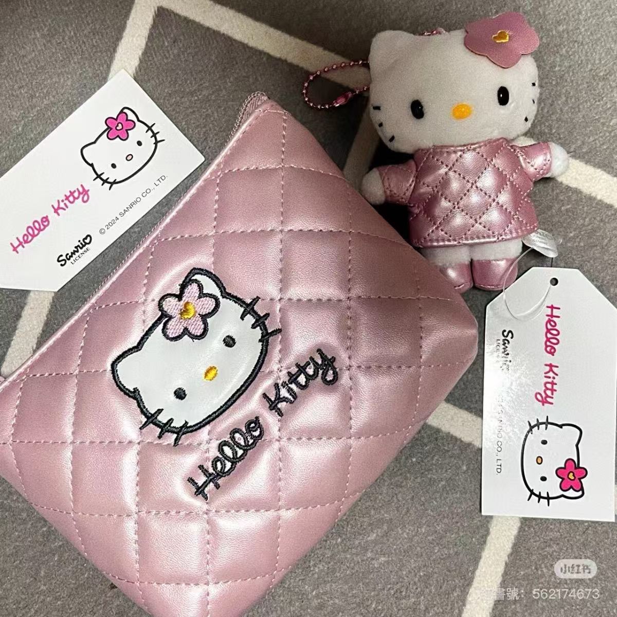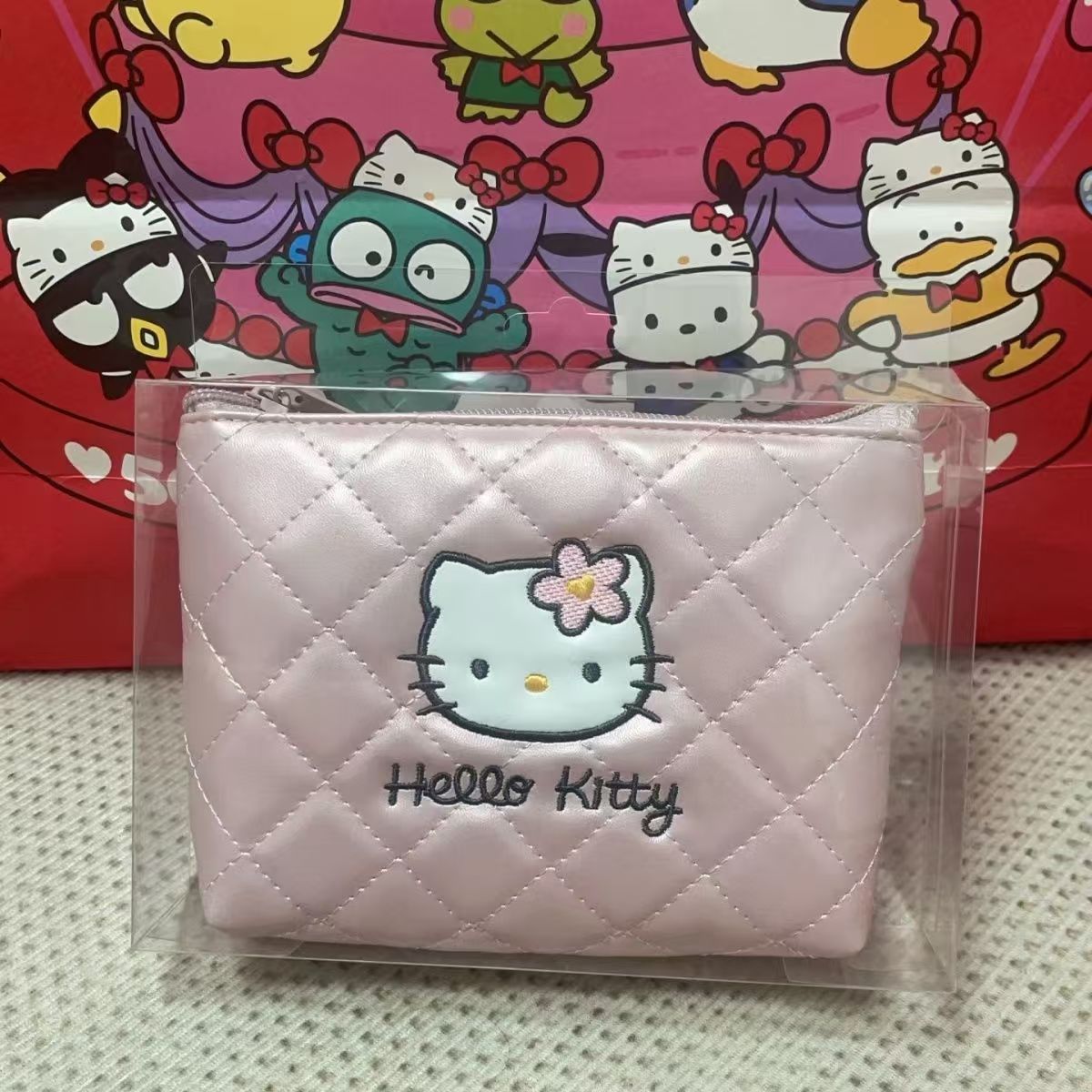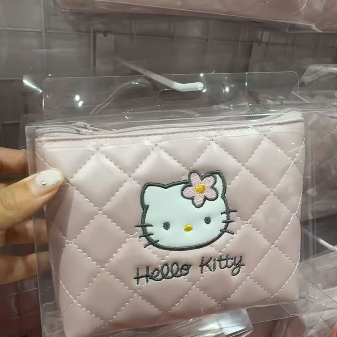 핑크 kt 고양이 동전 지갑 헬로 키티 자수 화장품 가방 카드 가방 휴대용 작은 저장 가방 귀여운 작은 가방