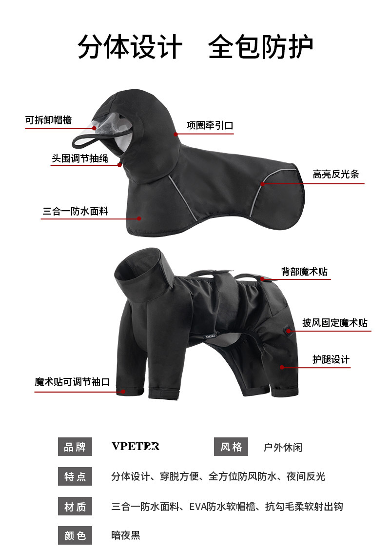 애완동물옷, 야외비옷, 투피스 여름강아지옷, 단독착용 가능, 더러움 방지옷, 4다리 일체형 레인코트, 강아지