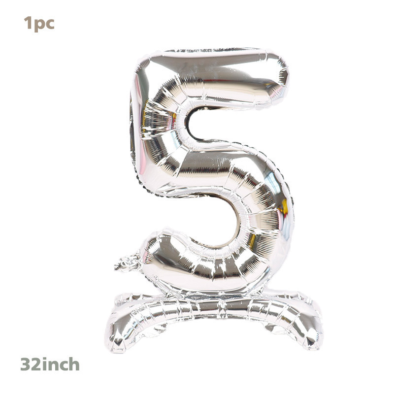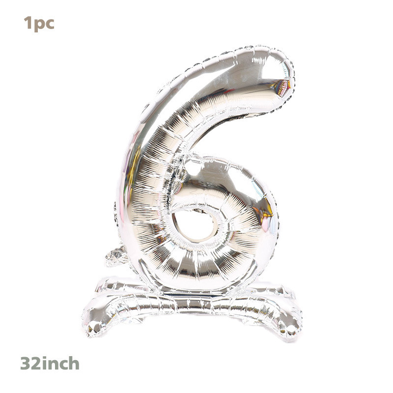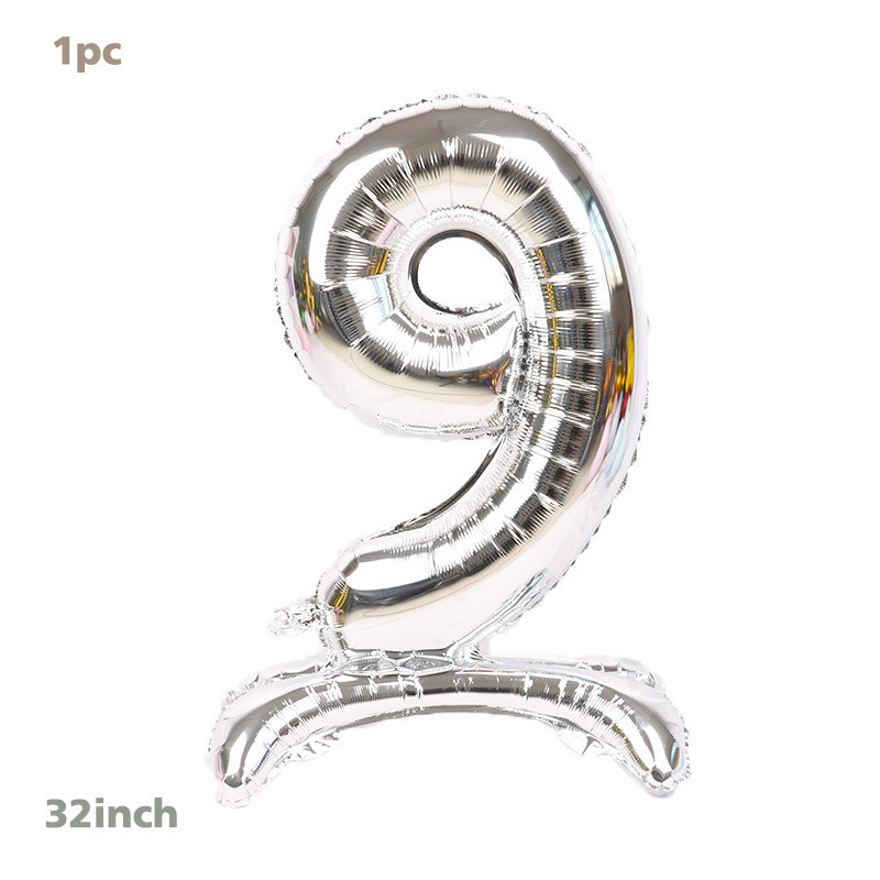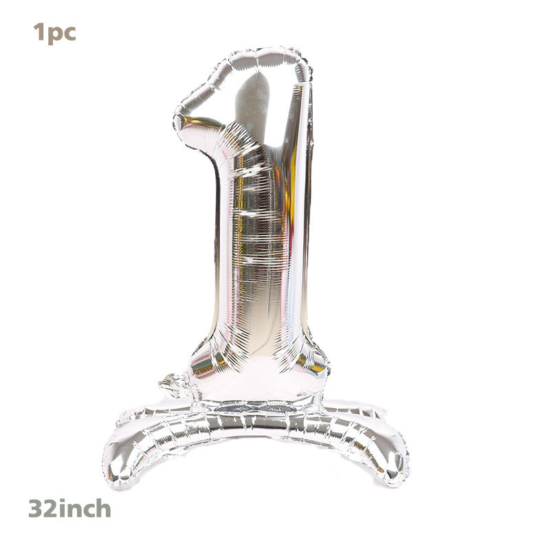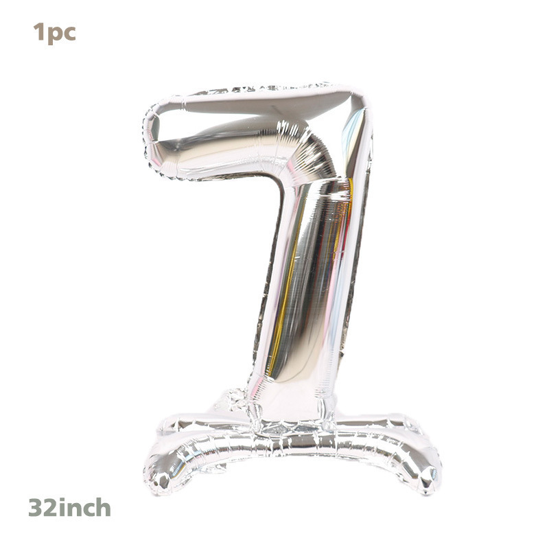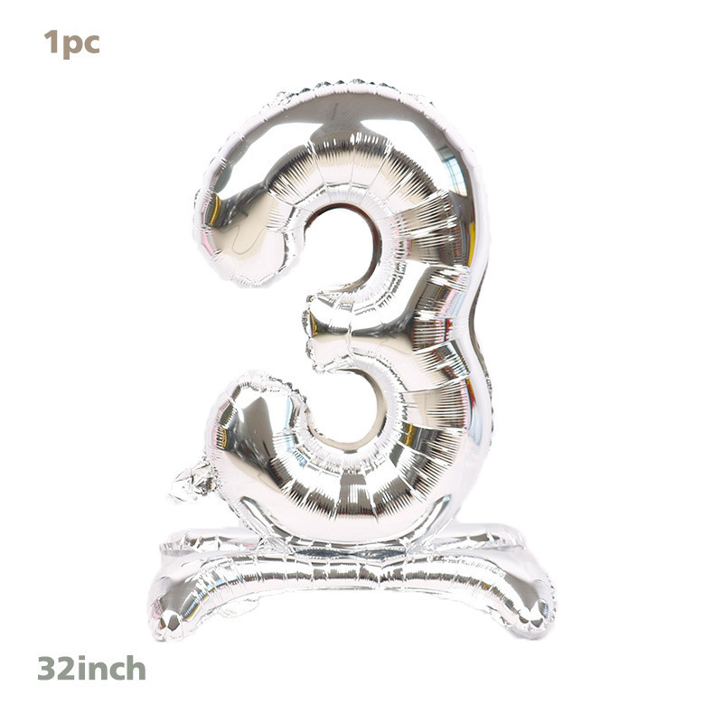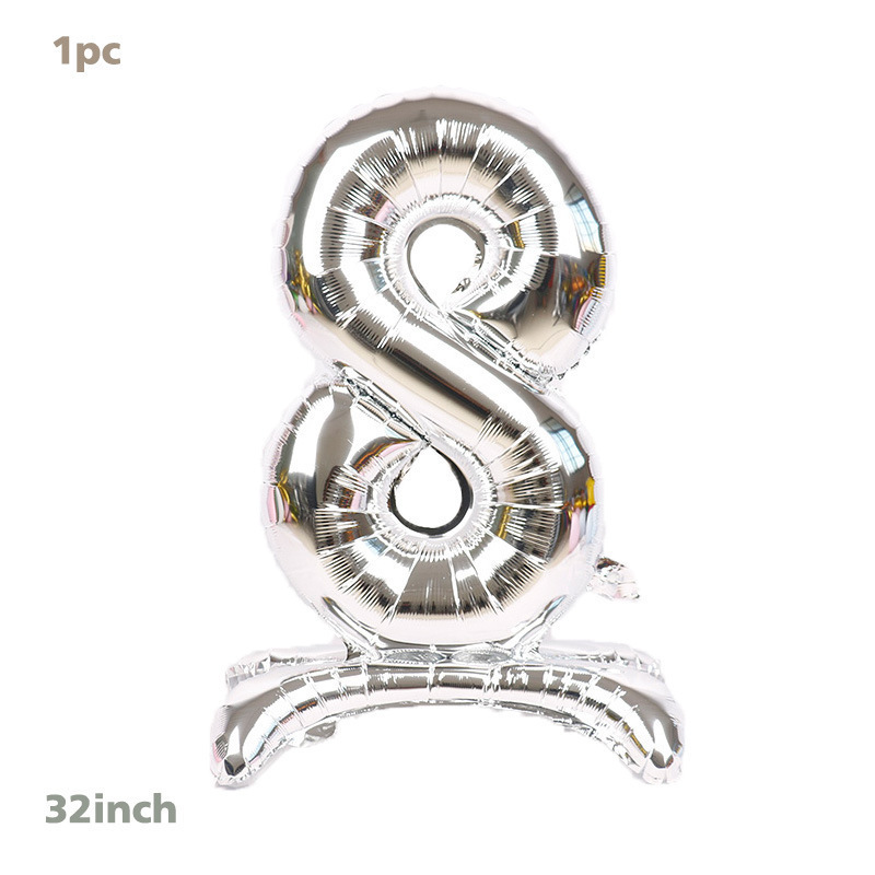 독립적으로 포장 된 32inch 스탠딩 실버 디지털 알루미늄 필름 풍선 입체 좌석 생일 파티 장식 국경 간 도매