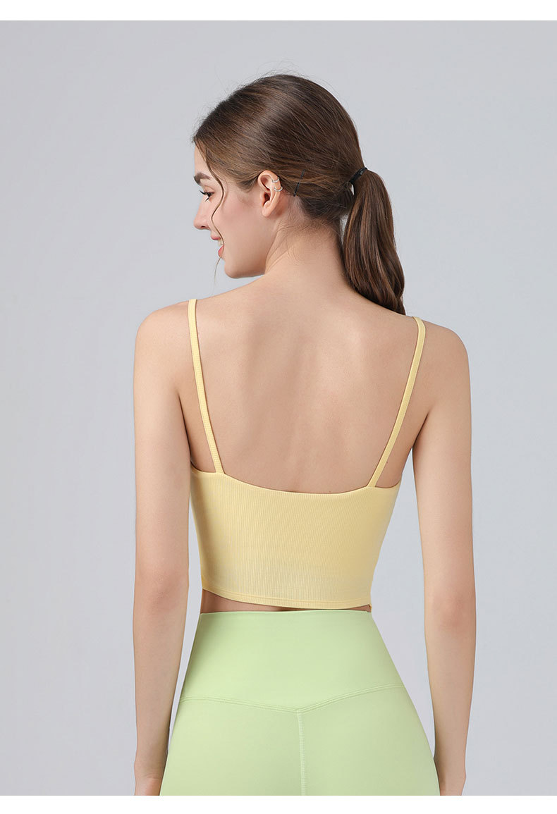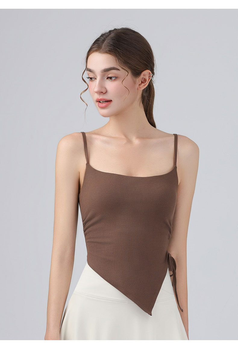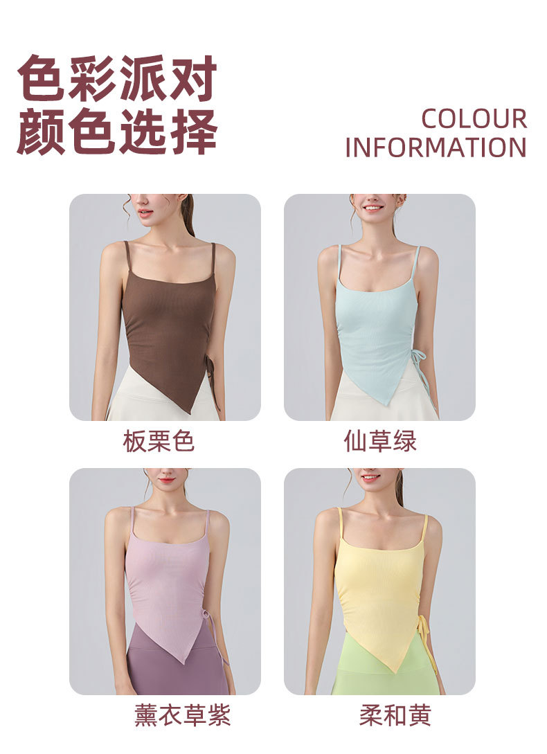 요가 조끼, 고정 컵 스포츠 브라, 피트니스 백리스 불규칙 캐미솔, 가슴 패드 내부 탑