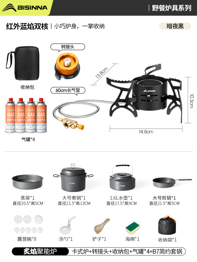 카세트 스토브, 야외 스토브, 휴대용 적외선 분할 가스 스토브, 차 스토브, 캠핑 및 피크닉 조리기구 세트스토어 가기