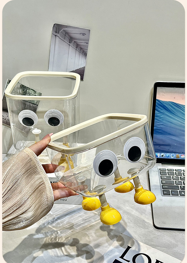 • 뚜껑이 있는 투명한 데스크탑 쇼트 모델 [작은 발 + 큰 눈 * 2 + 입]