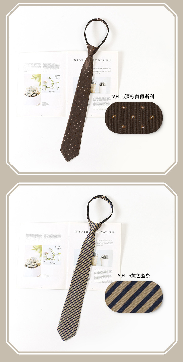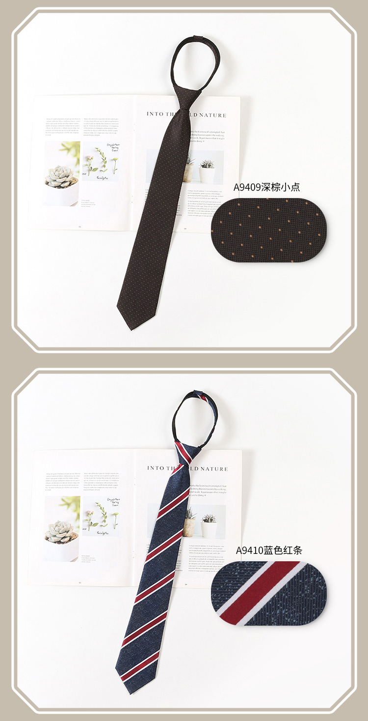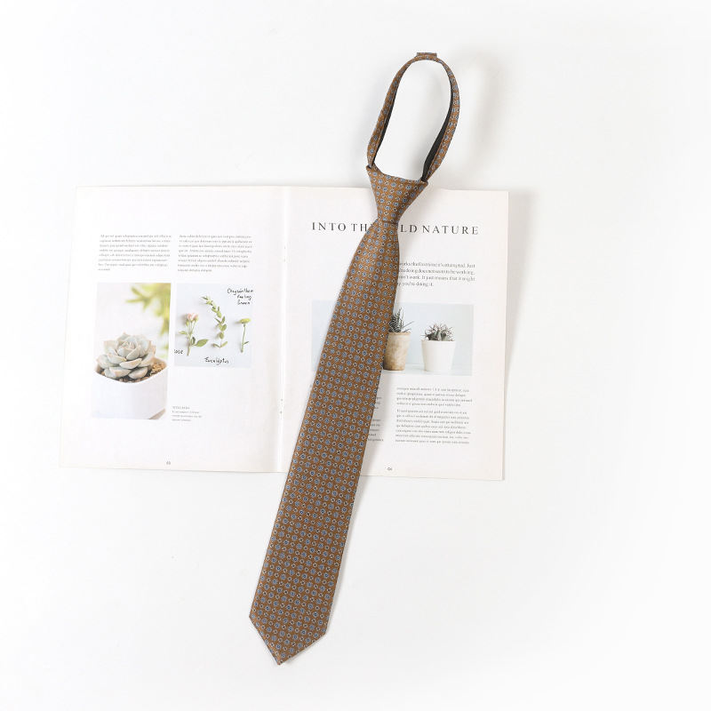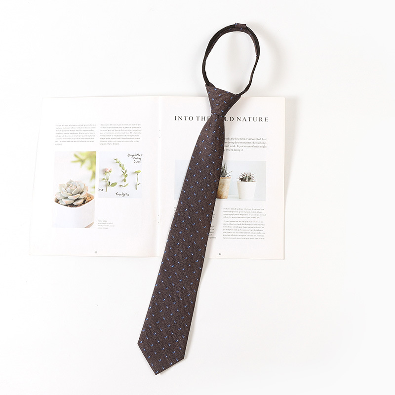 레트로 스트라이프 브라운 넥타이 일본 jk 대학 스타일 게으른 무료 셔츠 액세서리 지퍼 넥타이 남성과 여성을위한 동일한 스타일