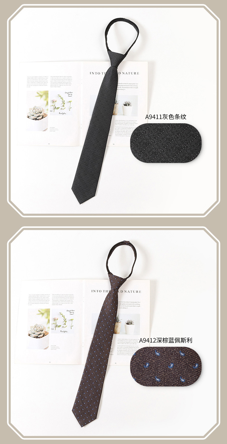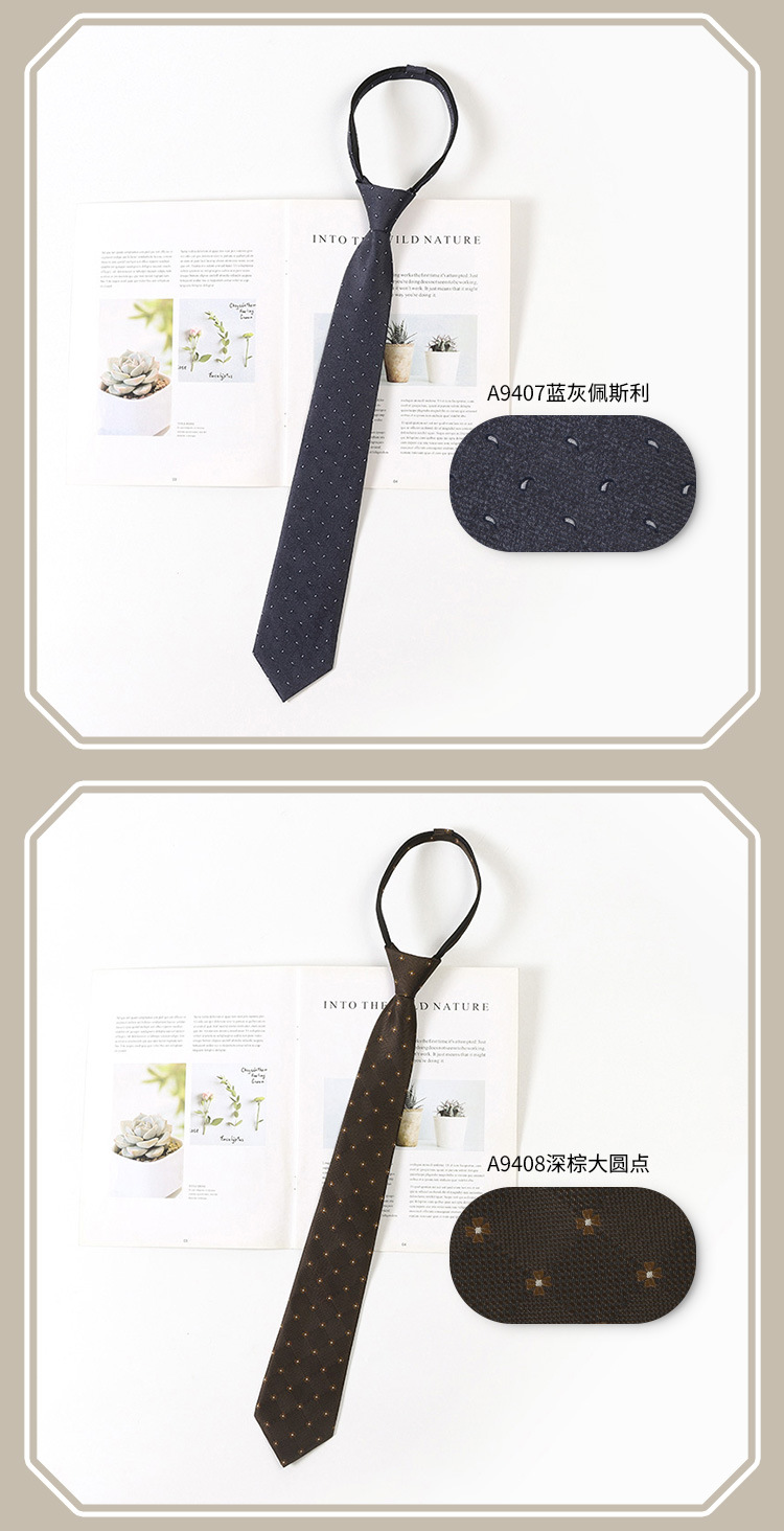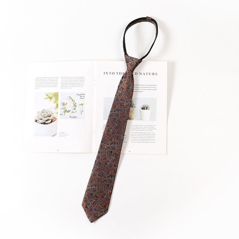 레트로 스트라이프 브라운 넥타이 일본 jk 대학 스타일 게으른 무료 셔츠 액세서리 지퍼 넥타이 남성과 여성을위한 동일한 스타일