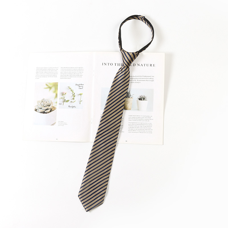 레트로 스트라이프 브라운 넥타이 일본 jk 대학 스타일 게으른 무료 셔츠 액세서리 지퍼 넥타이 남성과 여성을위한 동일한 스타일스토어 가기