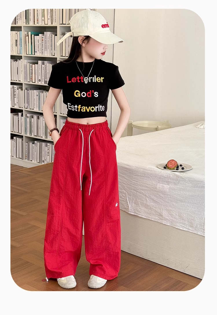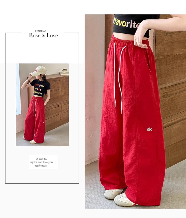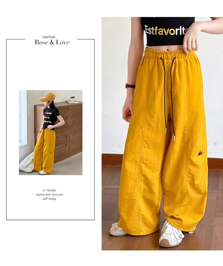 여아 작업복 캐주얼 바지 여름 스타일 여아 스트리트 재즈 댄스 어린이 속건성 자외선 차단제 와이드 레그 롱 팬츠스토어 가기