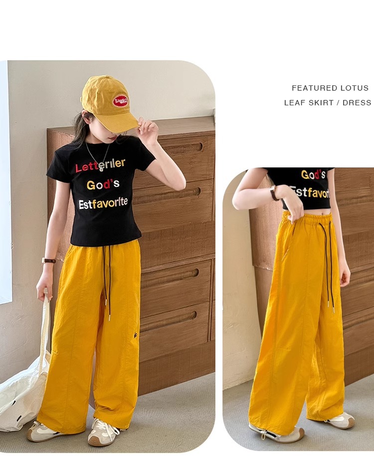 여아 작업복 캐주얼 바지 여름 스타일 여아 스트리트 재즈 댄스 어린이 속건성 자외선 차단제 와이드 레그 롱 팬츠