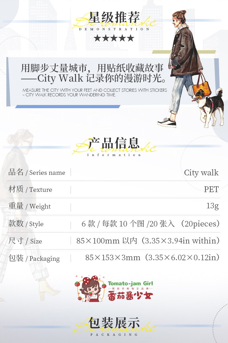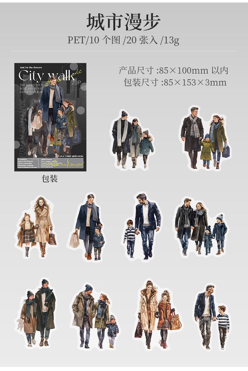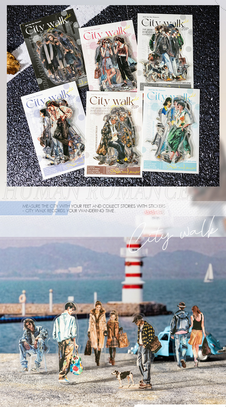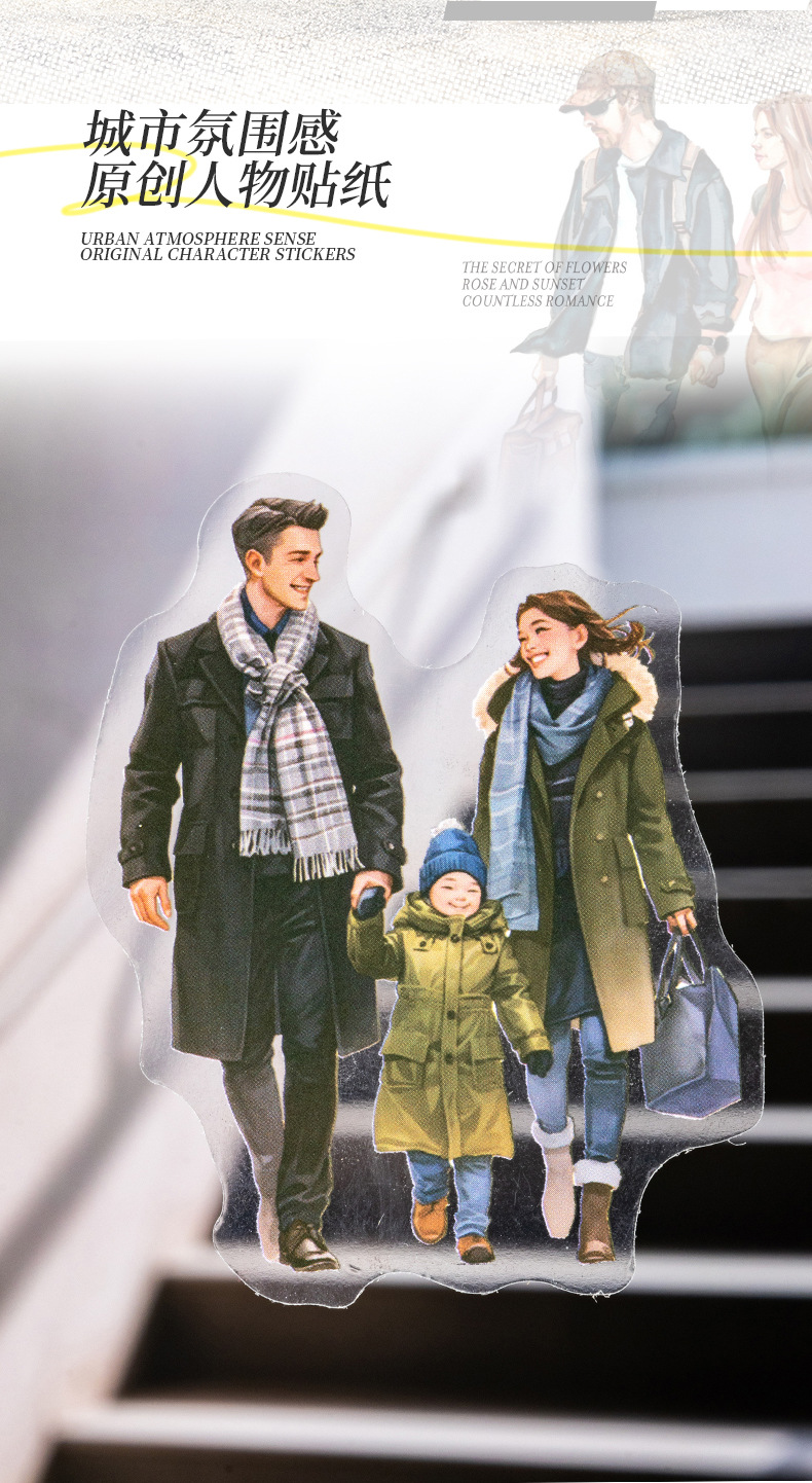 시티 워크 오리지널 캐릭터 PET 특수 모양 스티커 복고풍 도시 분위기 캐릭터 핸드북 장면 장식 diy
