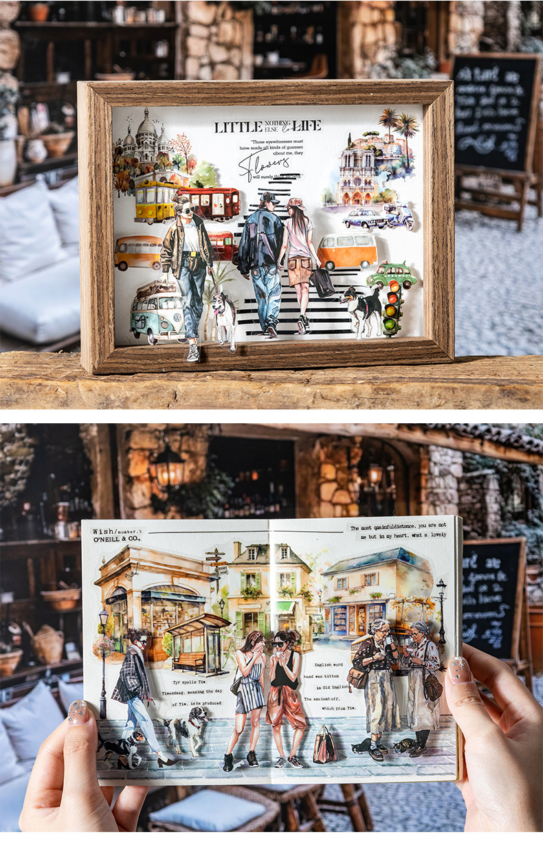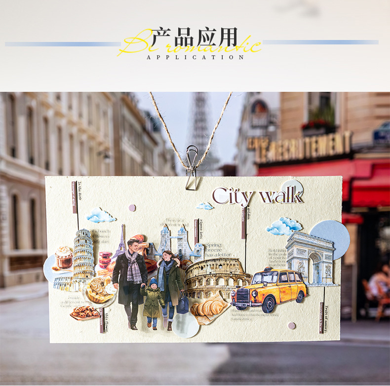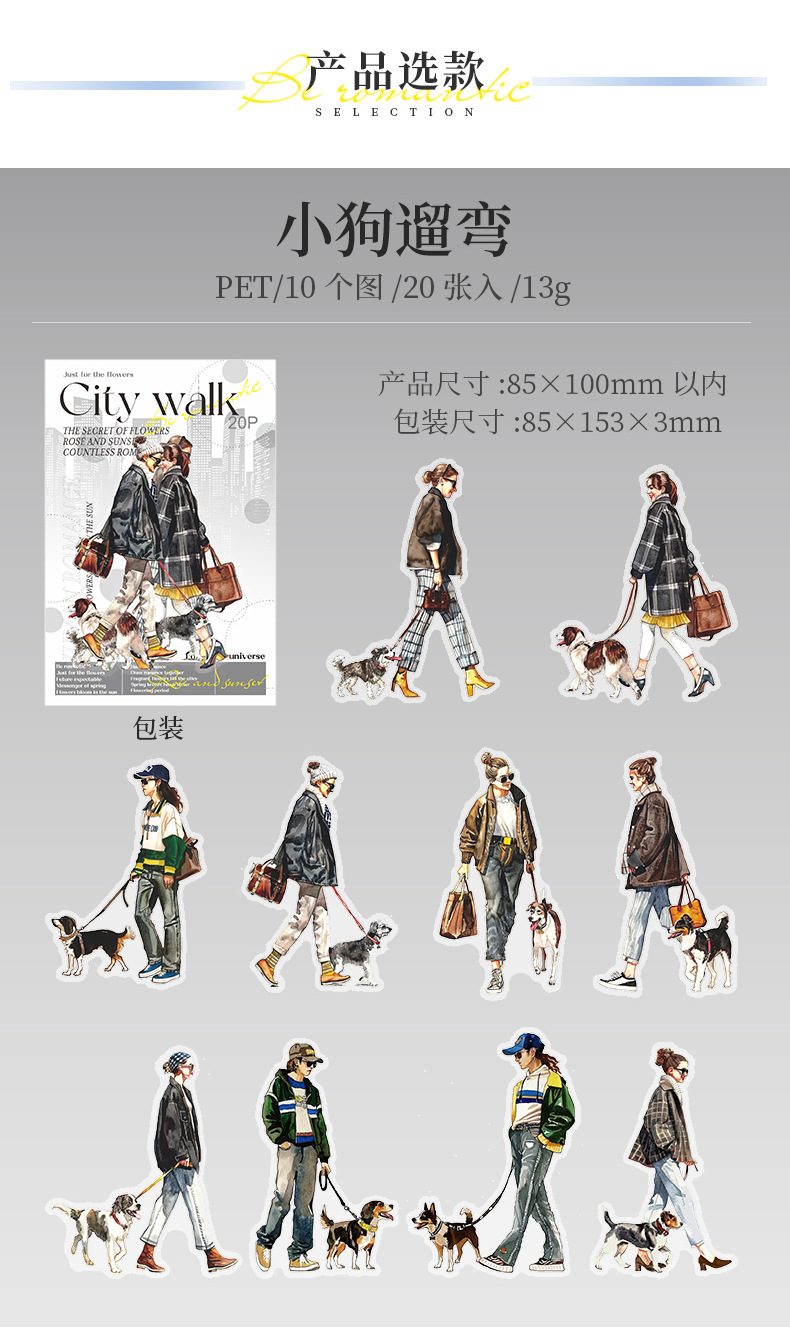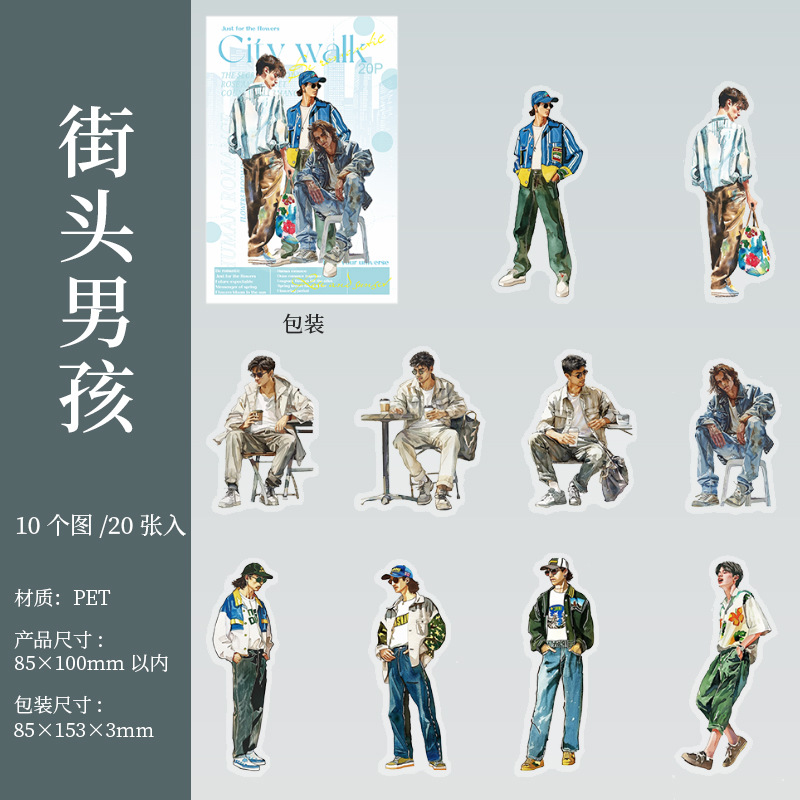 시티 워크 오리지널 캐릭터 PET 특수 모양 스티커 복고풍 도시 분위기 캐릭터 핸드북 장면 장식 diy