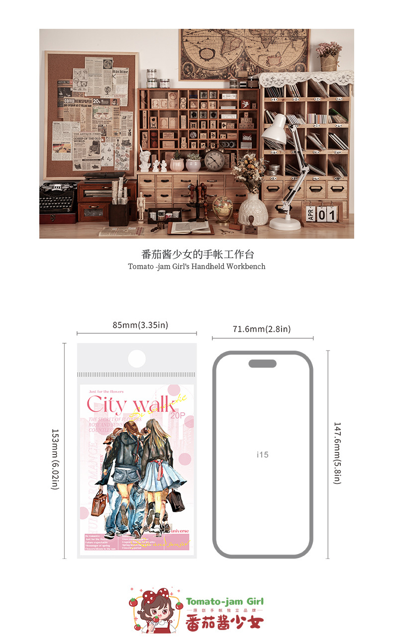 시티 워크 오리지널 캐릭터 PET 특수 모양 스티커 복고풍 도시 분위기 캐릭터 핸드북 장면 장식 diy스토어 가기