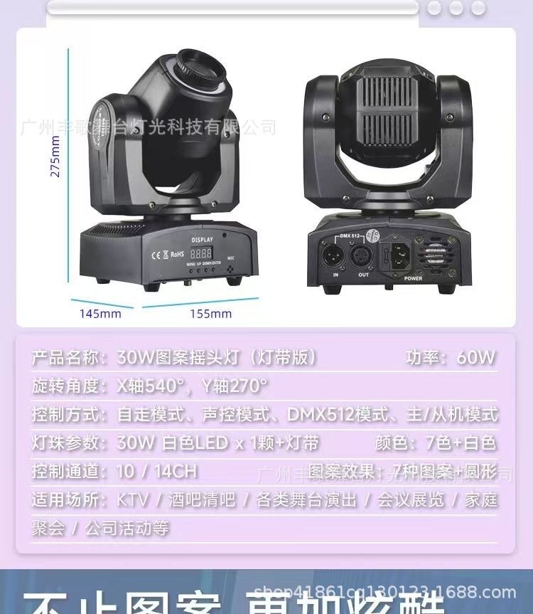 무대 30W 소형 빔 라이트 KTV 박스 라이트 60W 패턴 라이트 바 클리어 바 90W 다채로운 회전 이동 헤드 라이트스토어 가기