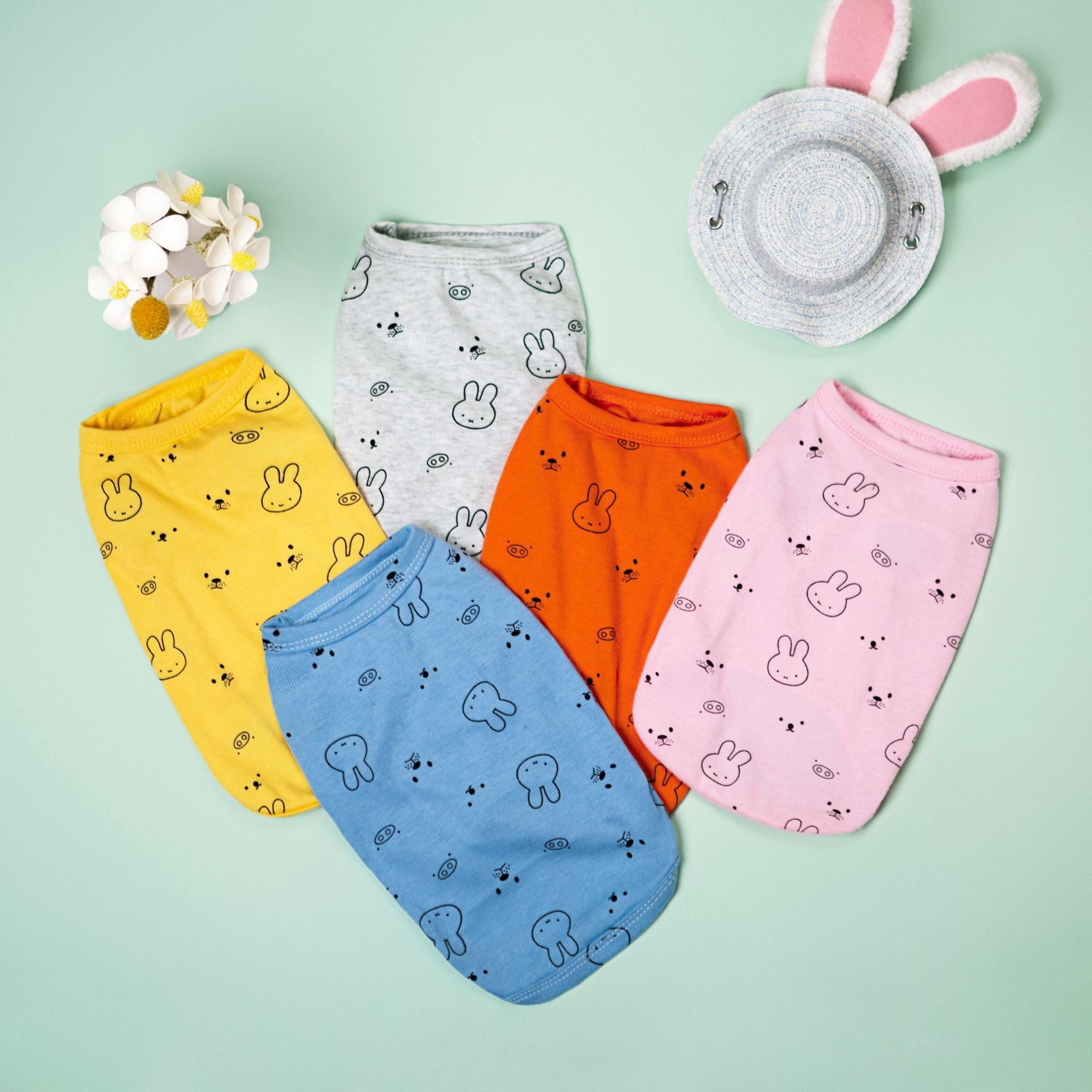애완 동물 고양이와 개 옷 봄과 여름 새로운 와플 애완 동물 조끼 중소형 개 테디 비숑 개 의류 도매스토어 가기