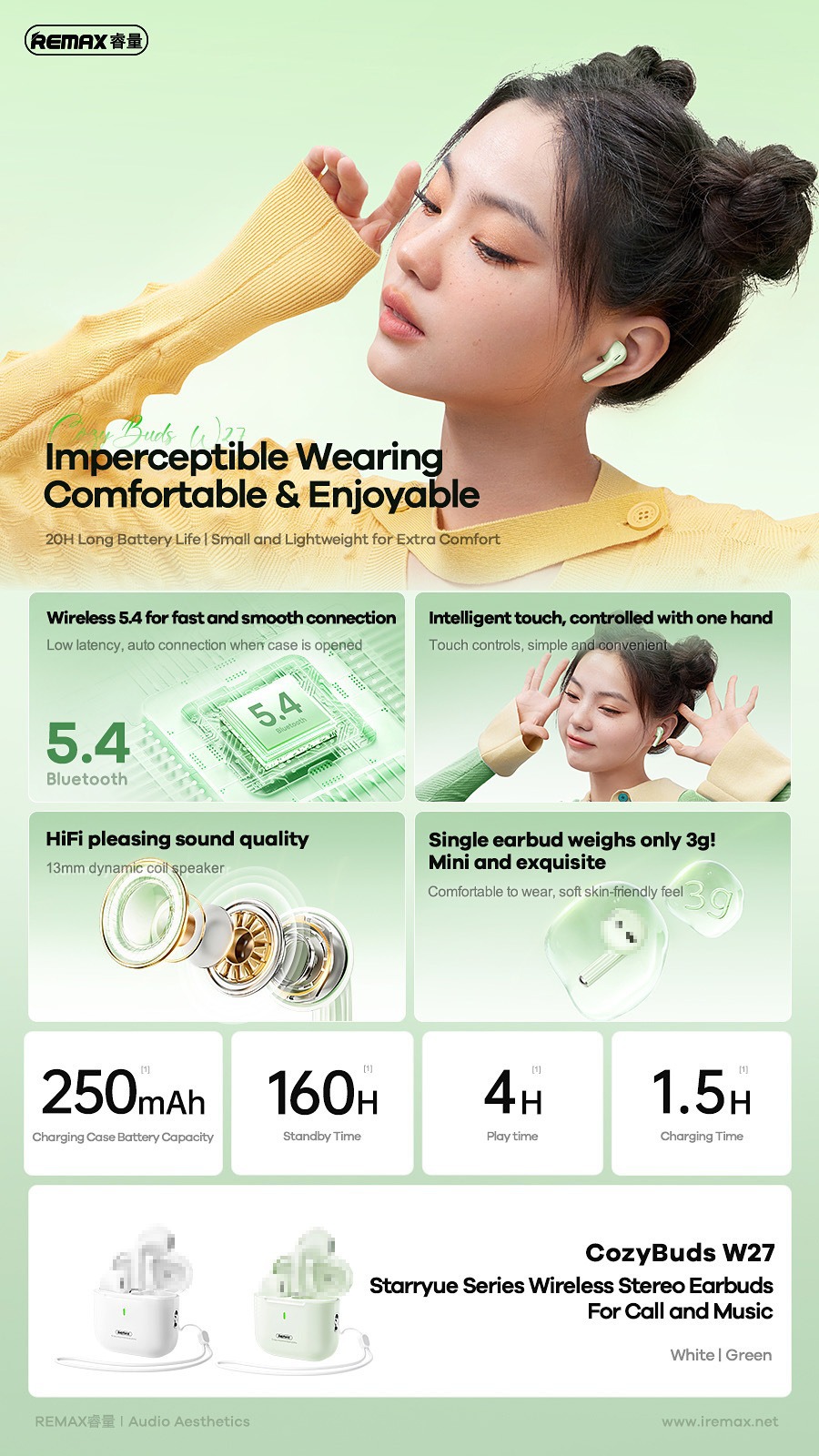 Remax Xingyue Bluetooth 5.4 낮은 대기 시간 및 지연 없음 이어 버드 Bluetooth 헤드셋 스마트 터치 무선 헤드셋스토어 가기