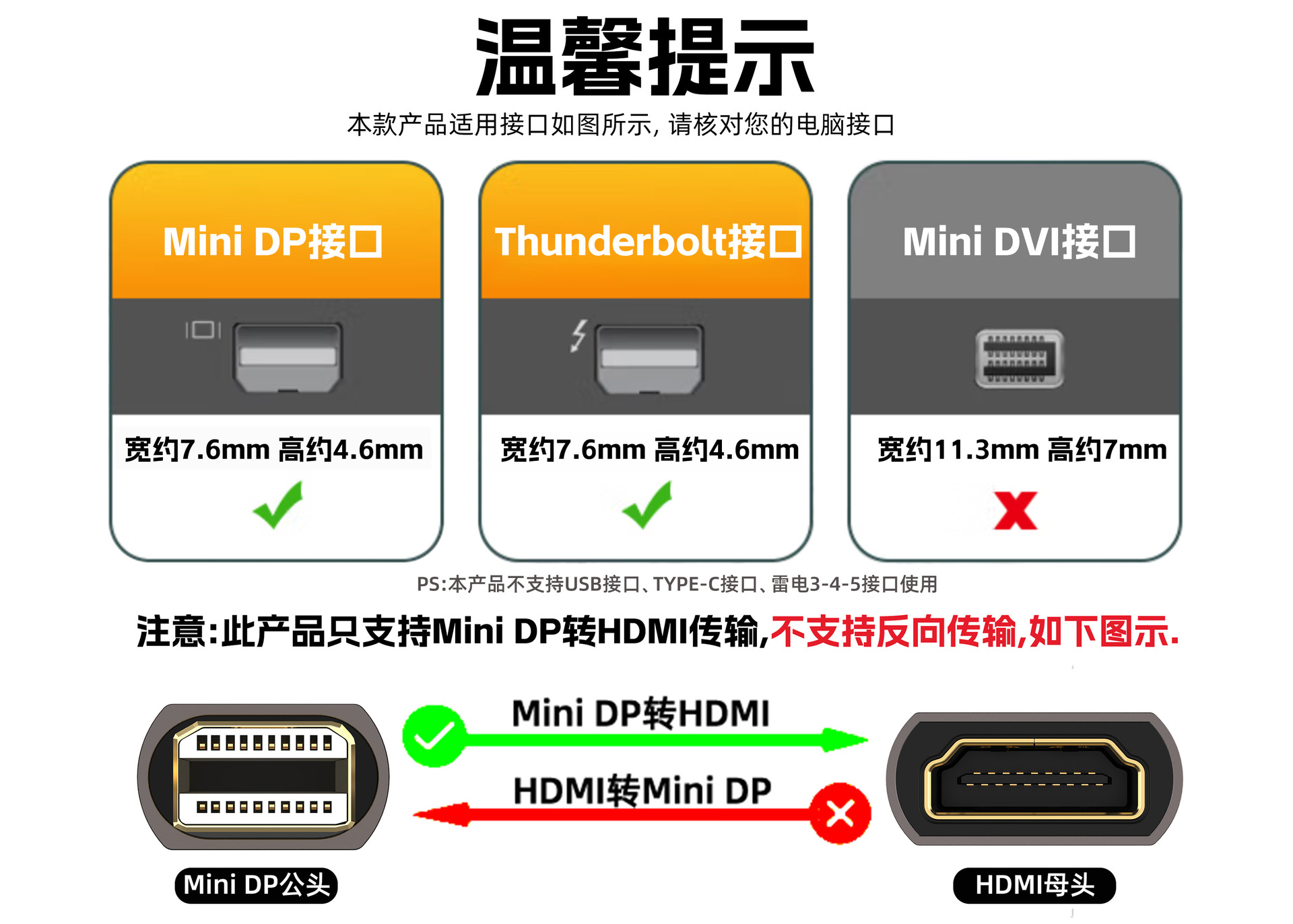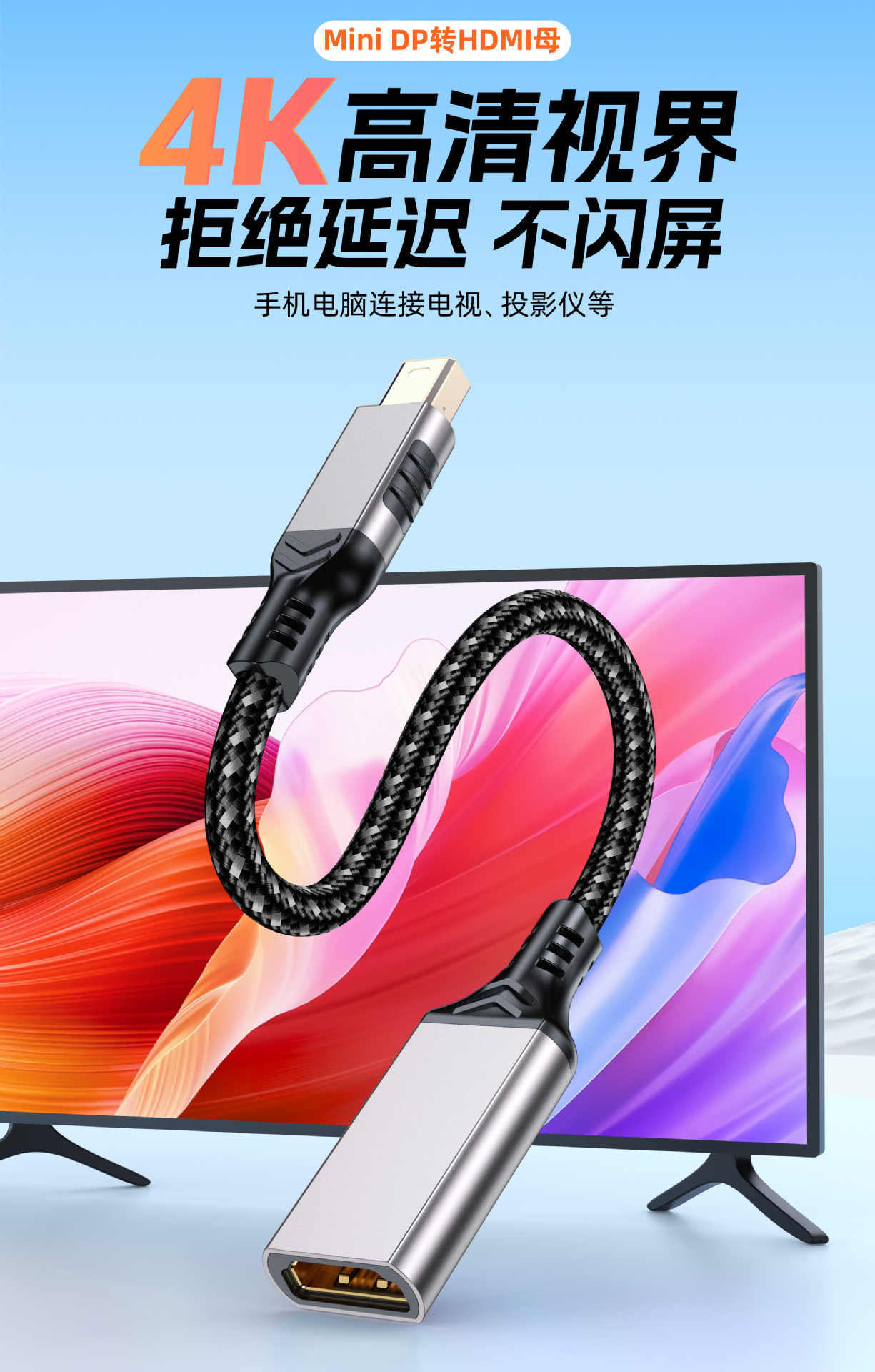 MiniDP-HDMI 변환기 4K HD Thunderbolt 2 모니터 프로젝터에 연결된 미니 DP 인터페이스 어댑터스토어 가기