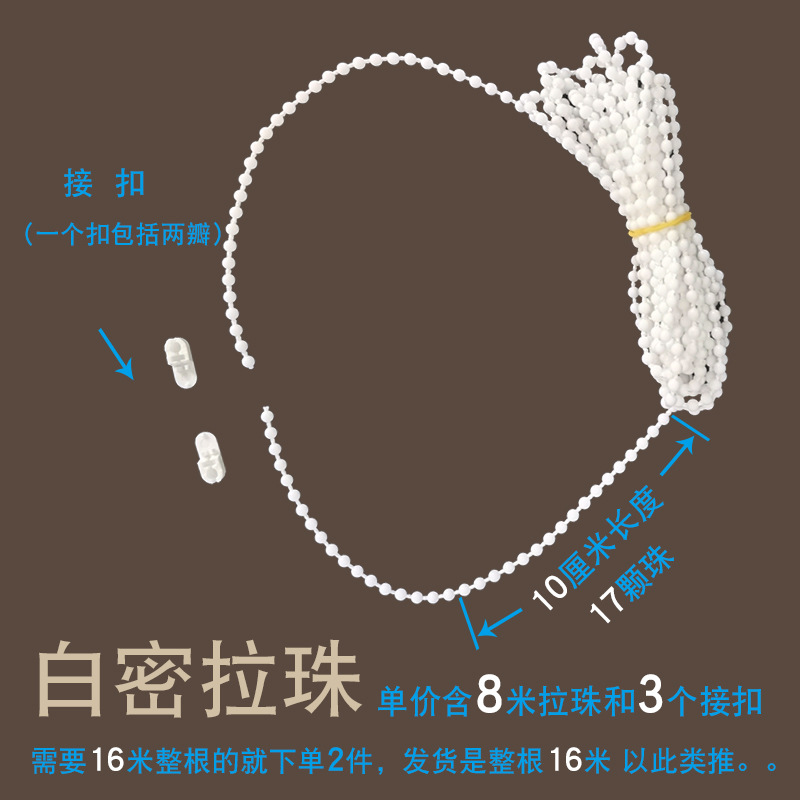 커튼 당김줄, 빛차단 블라인드, 흰색 밀라비즈, 상하 회전축, 손으로 당기는 롤러블라인드 액세서리, 체인 버클스토어 가기