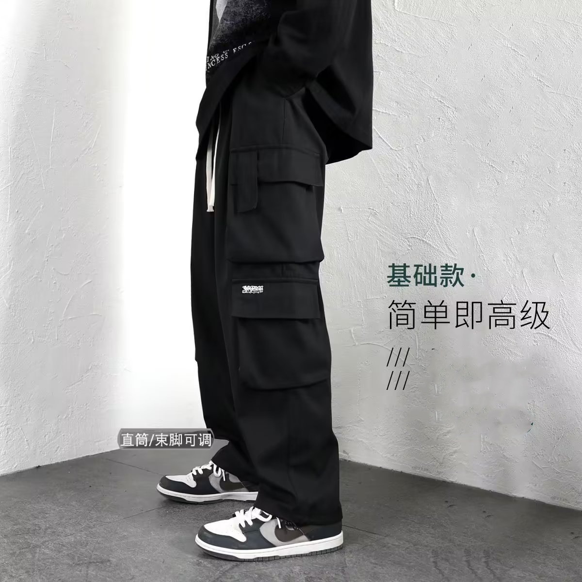 뚱뚱한 남성용 작업복, 봄, 가을 트렌디한 와이드 레그 캐주얼 바지, 청소년 스트레이트 플러스 사이즈 루즈 팬츠